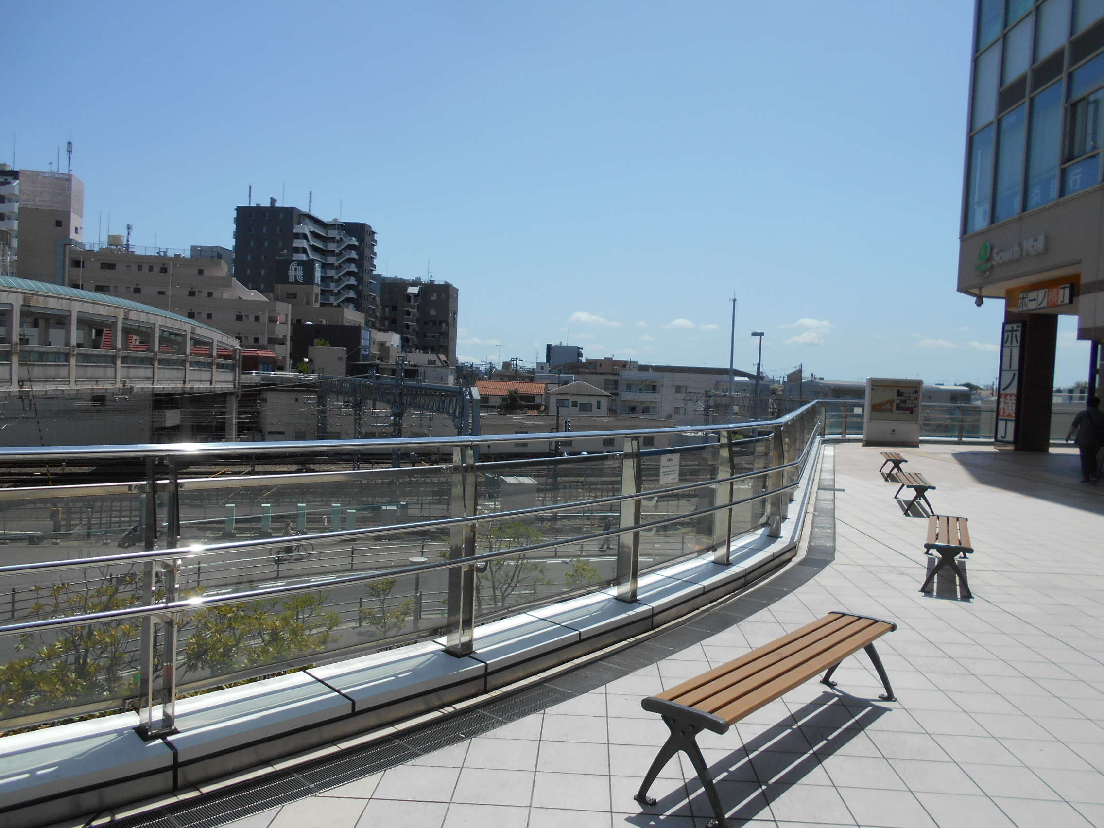 商業施設小田急ステーションスクエアとボーノにはさまれた広場は小田急電鉄見学スポット。