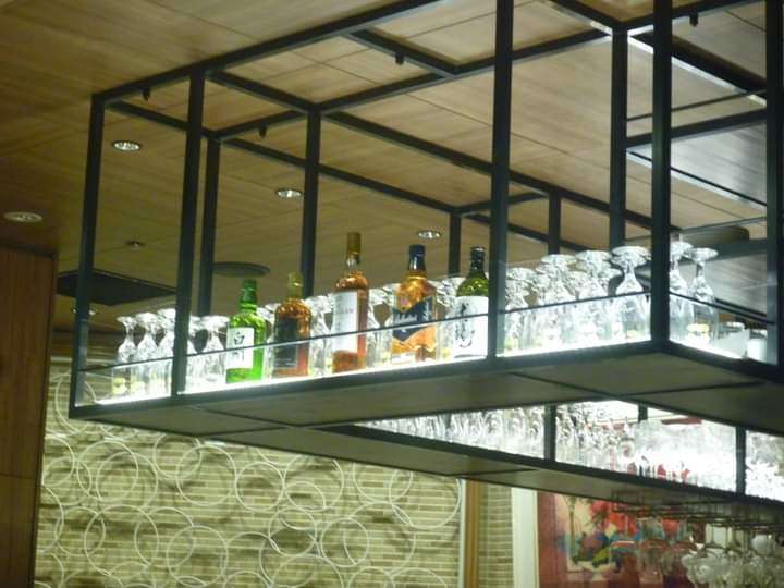 ディスプレイ棚にあるアルコール類もおしゃれなインテリア風景