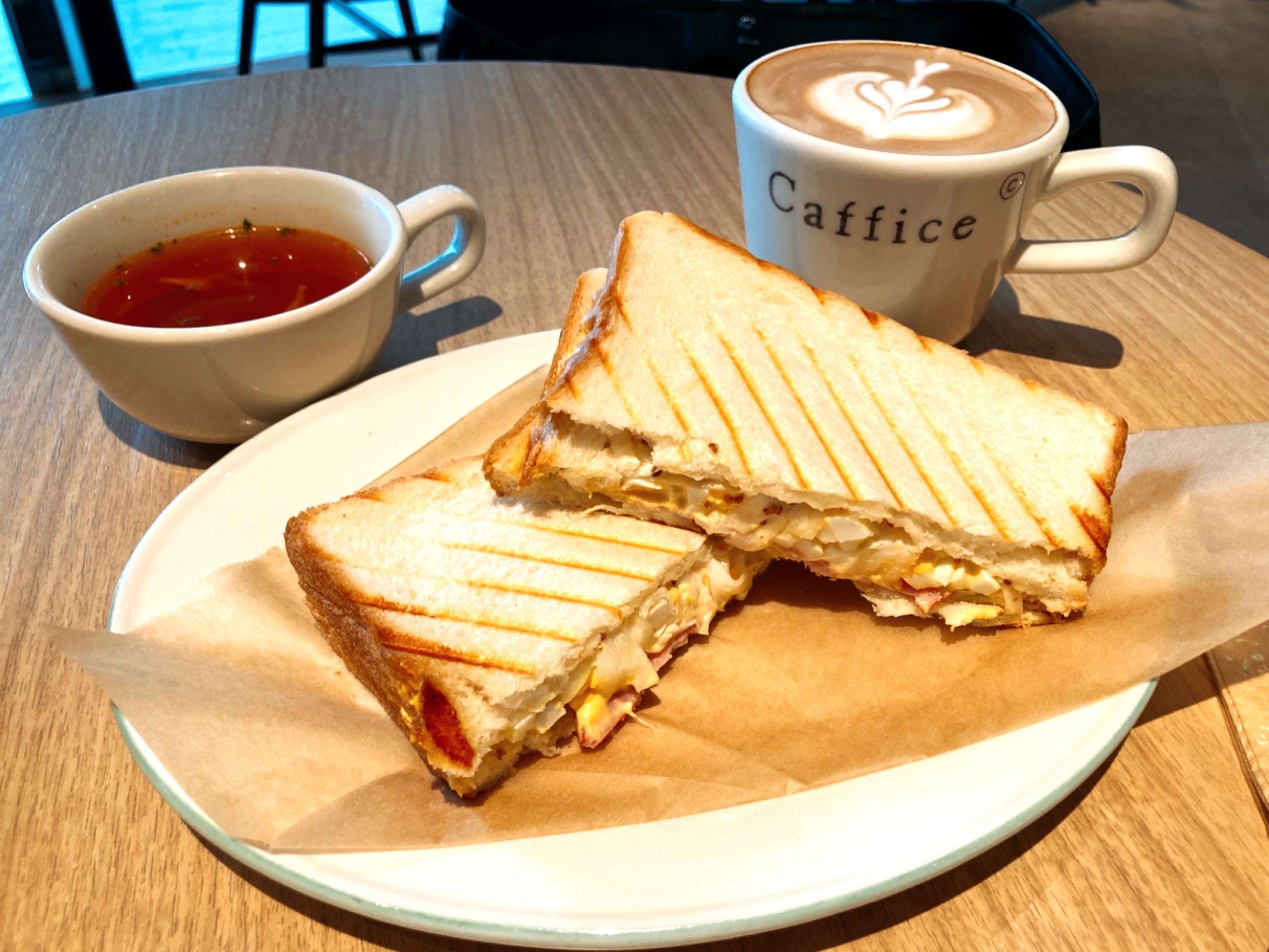 この日のランチはサンドイッチ+スープ+ドリンクのセットにしましたが、メニューは他にパスタと金沢カレー等があり、金額は新宿にしては手頃だと思います。