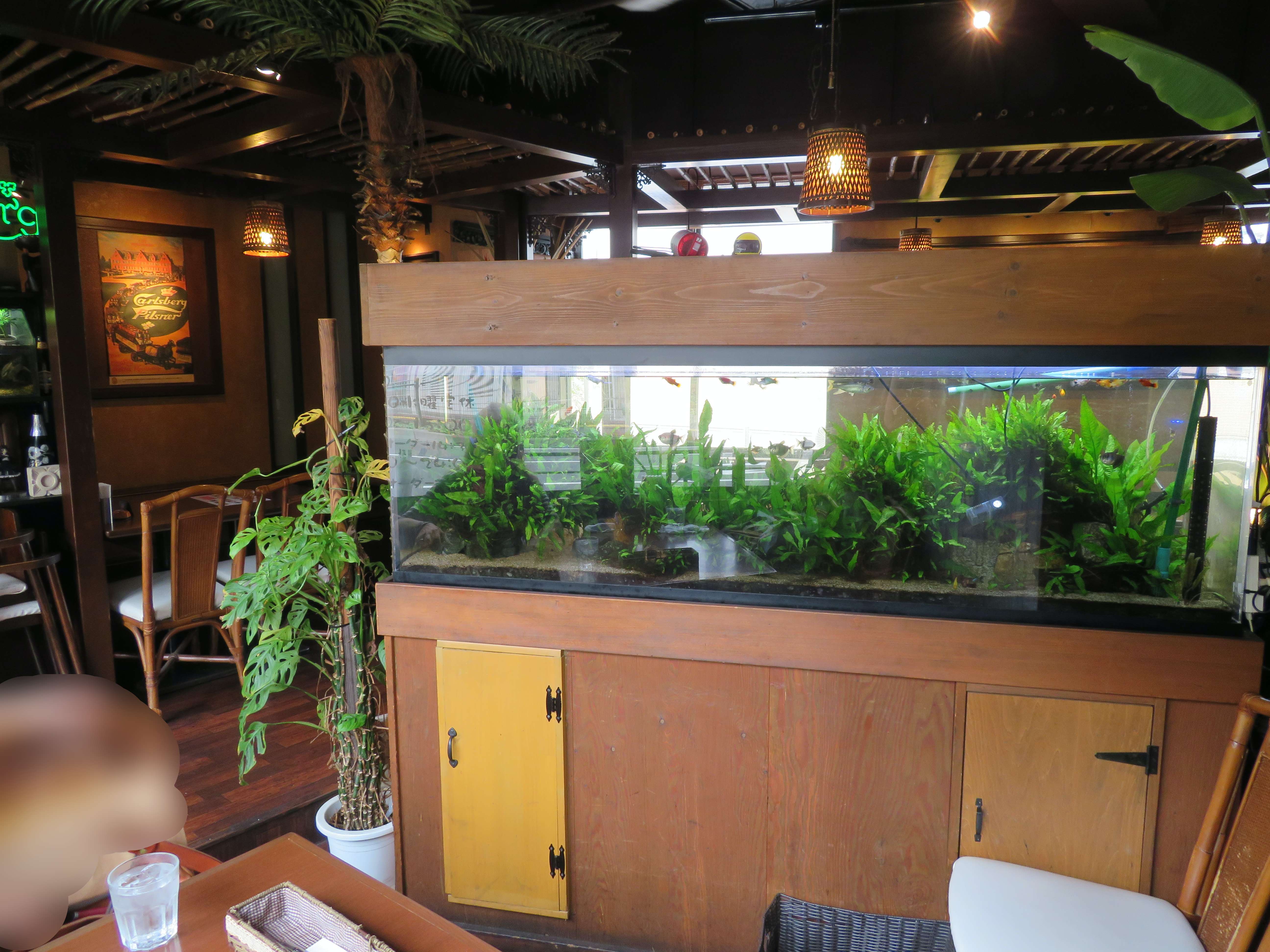 入ってみると、大きな水槽が出迎えてくれて、南国っぽい雰囲気に包まれます。