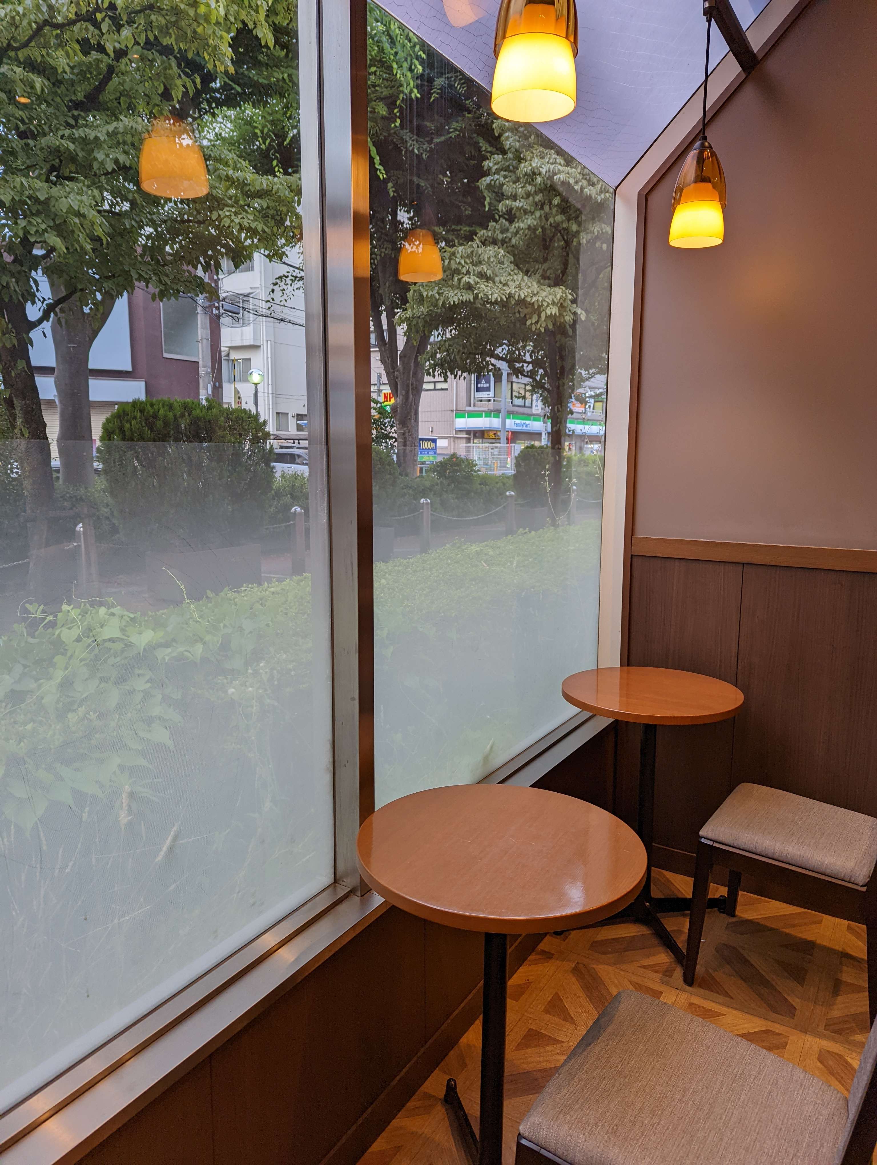 ガラス張りの店内から外の木々を見ることができて、しばしの間癒やされました。