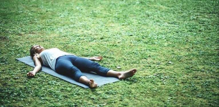 ヨガで体をほぐしたあとは、広々した芝生でゴロンとリラックス。
