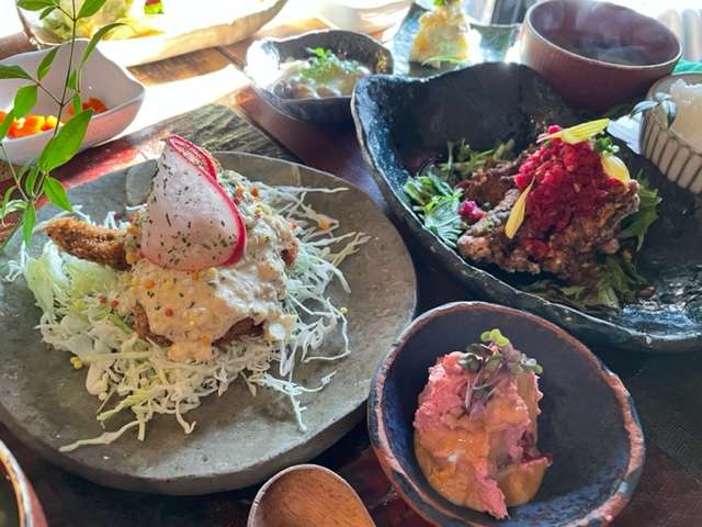 なんと!名物「とんきこ生姜ガーリック焼き」と「生姜軟骨水餃子」に、生姜惣菜を2品か3品つけられるセットなのです。