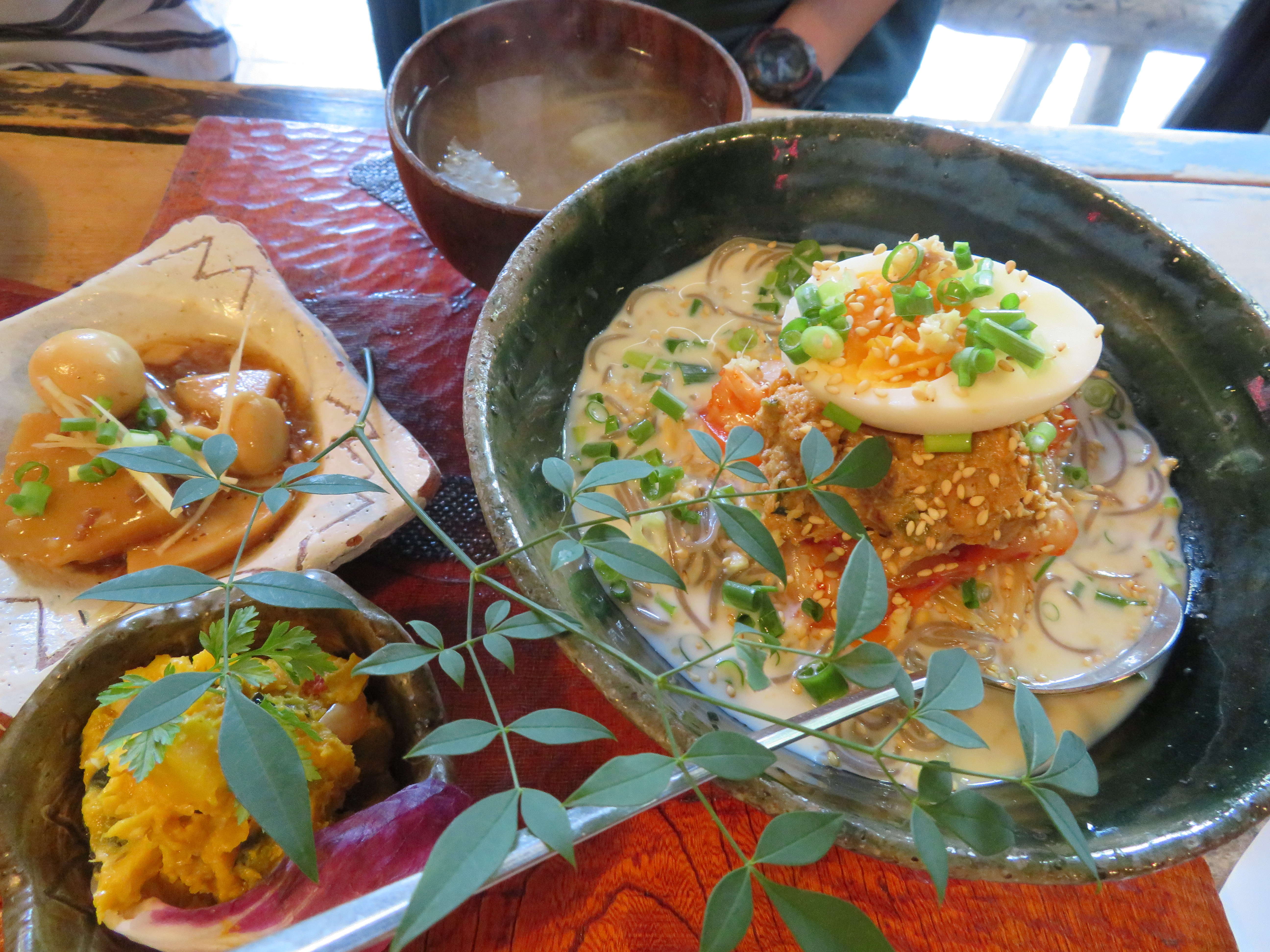 こちらは日替わりランチの中から、ジンジャー肉味噌豆乳冷麺です。