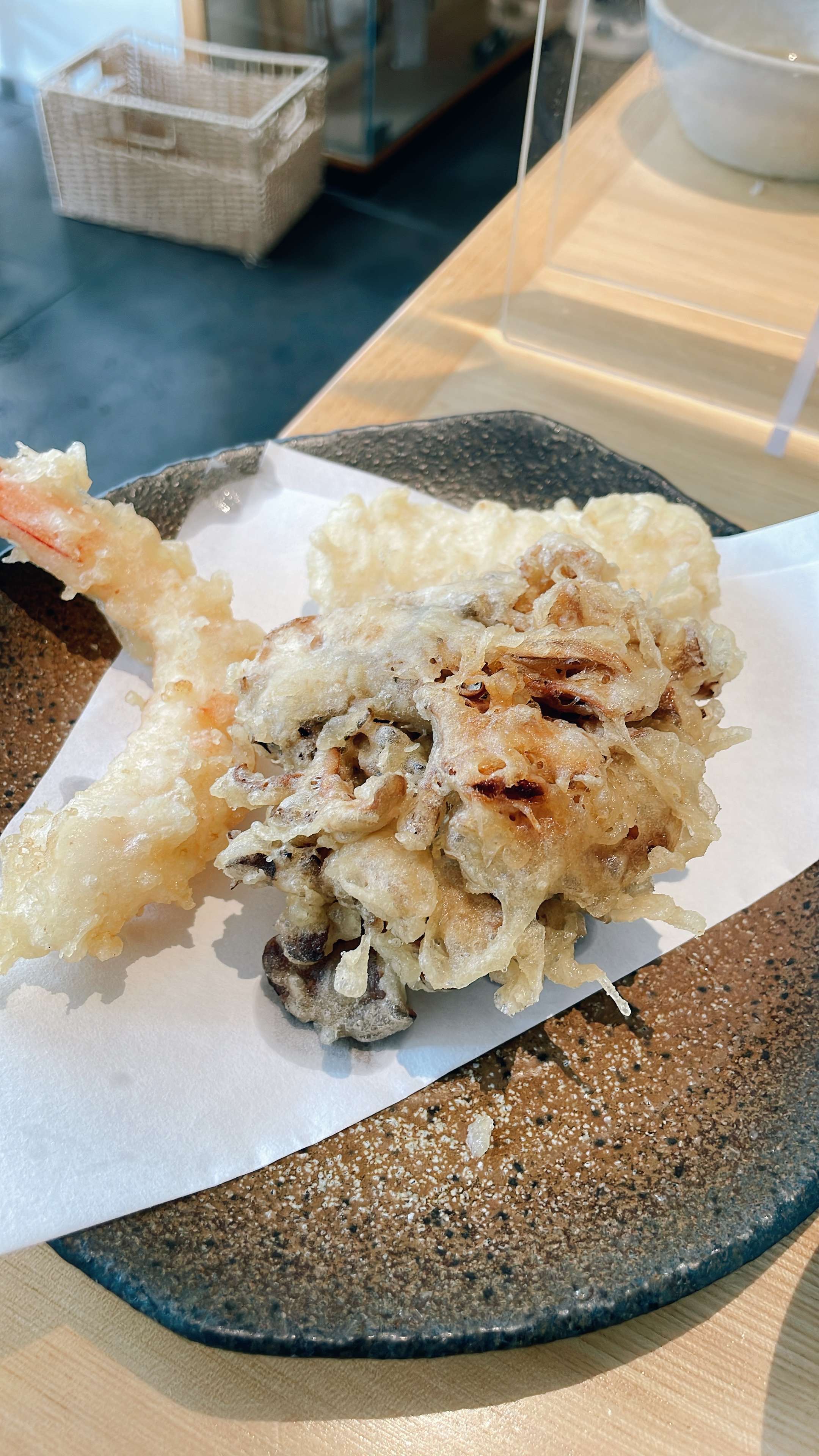 天ぷらは揚げたてで、噛むと衣がザックザク音を立てます。
