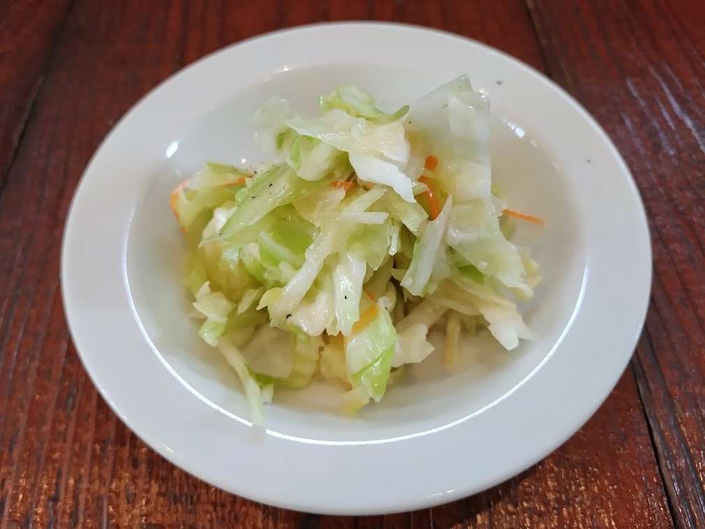 さっぱりした味のコールスローは、豆乳マヨネーズを使っているそうです。