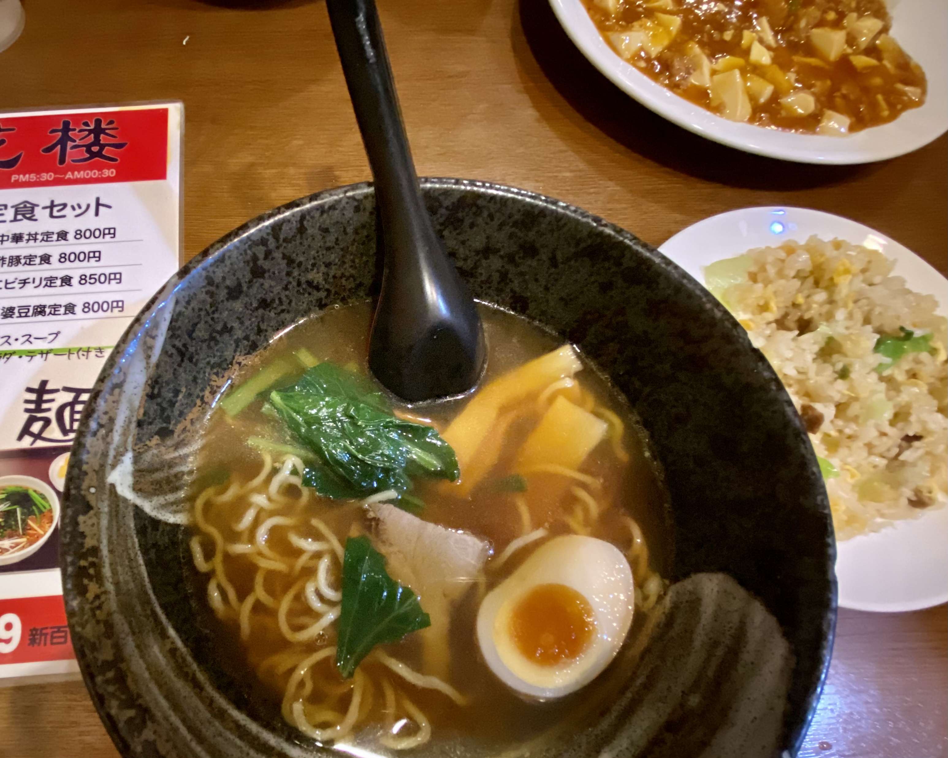 この日食べたのは、ランチメニューの杏花楼ラーメンと半チャーハン。