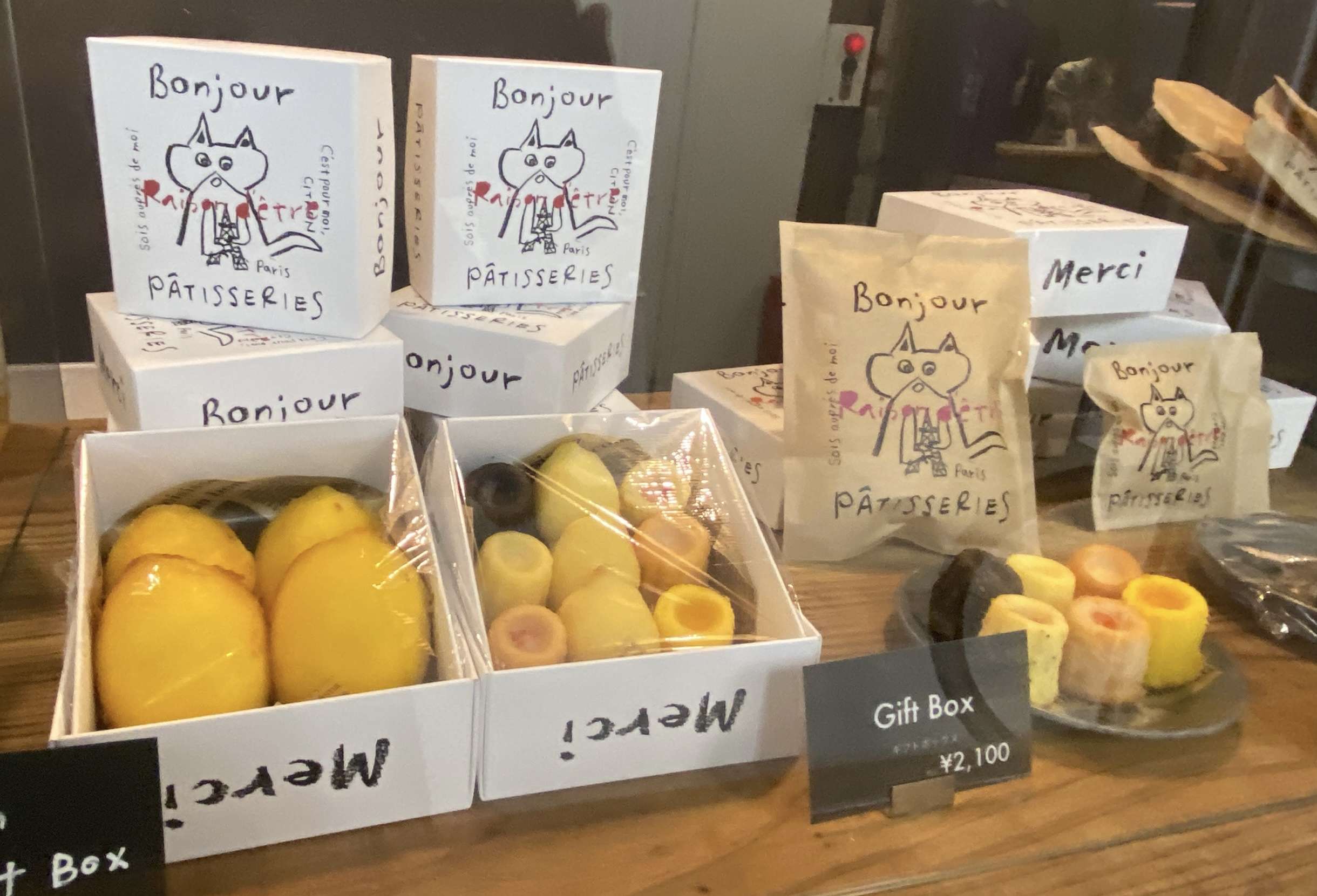 ショーウィンドウには鮮やかな檸檬色のレモンケーキたちとかわいい猫のイラストがたくさん。
