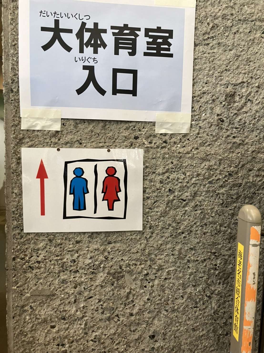 トイレは冒険広場近くの外にもありますが、総合体育館の中のトイレを使用することができました。(冒険広場のすぐ近くです!)