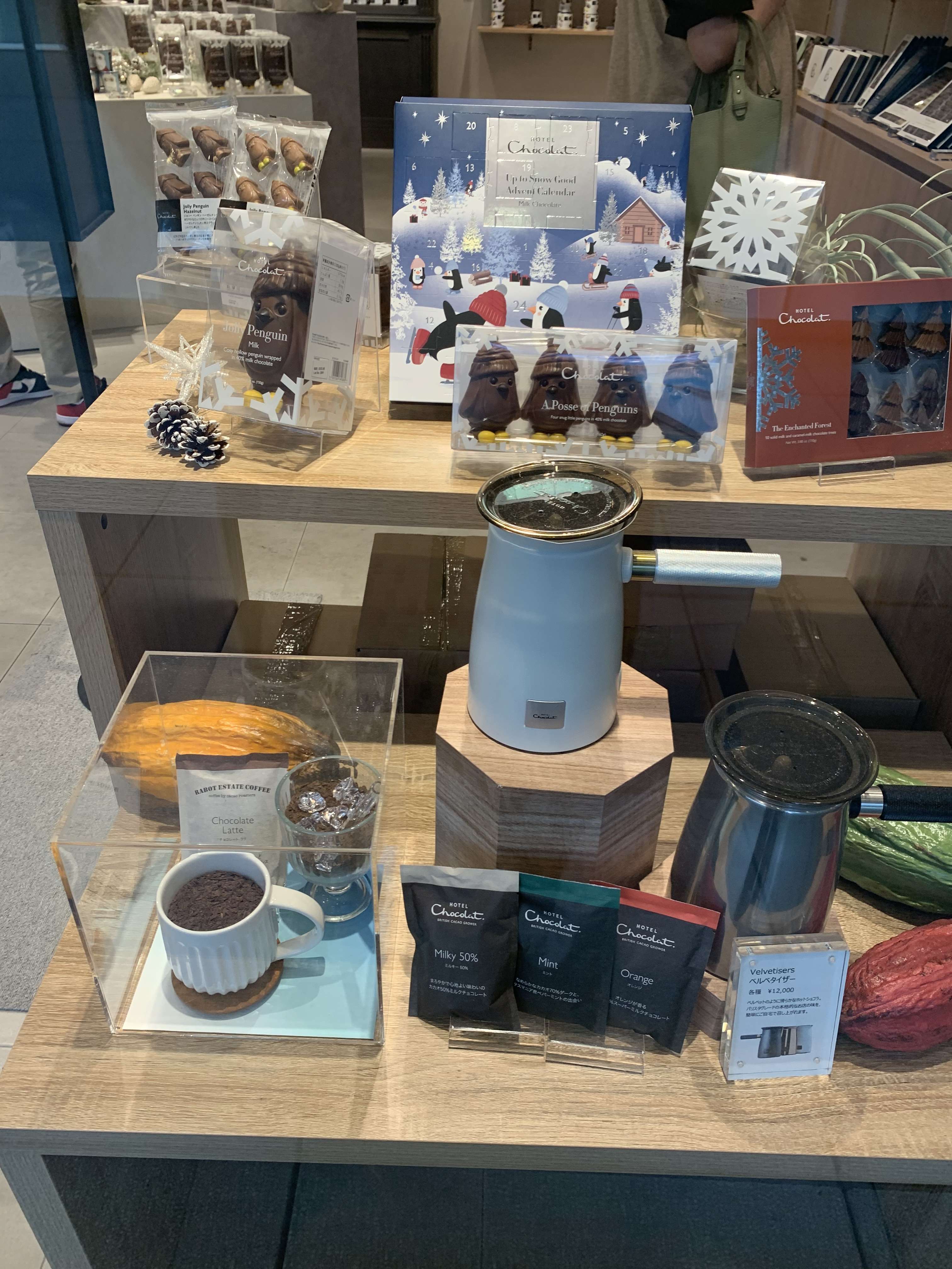 成城コルティ店ではギフト用から自宅用まで豊富なバリエーションのチョコレートを取り揃えており、併設されているカフェスペースではショコラドリンクやコーヒー、カカオアイス、季節限定のサンデーなどを味わうことができます。