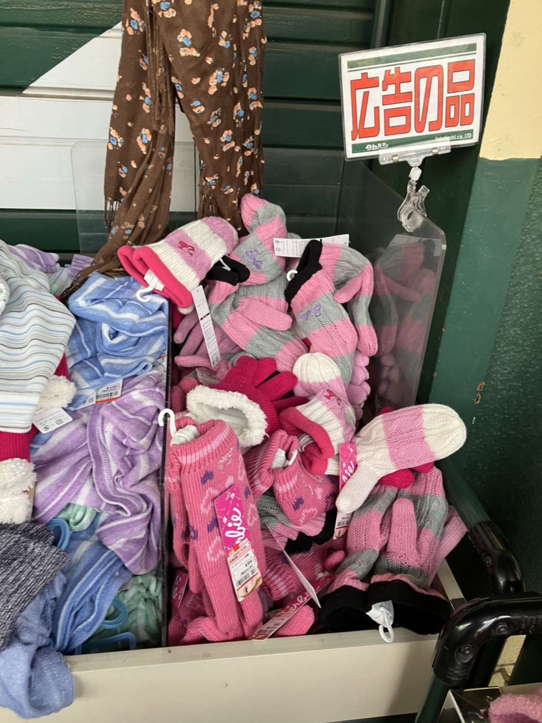 服だけでなく、マスクや傘やタオル、エプロン、水筒、お弁当箱、アルミホイルや化粧水などの日用消耗品まで‥