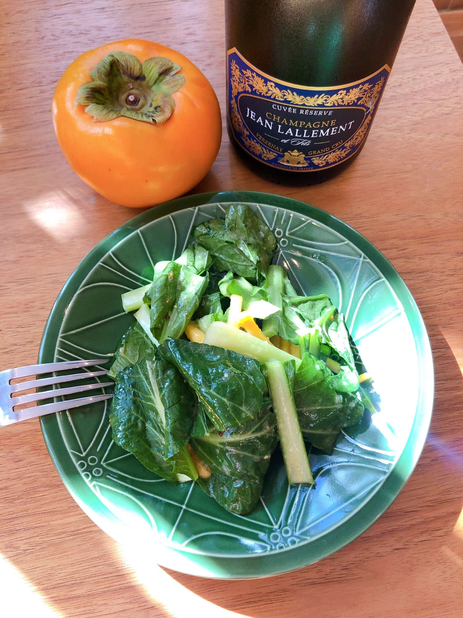 手作りの木桶醤油とフルーツ味噌のドレッシングは爽やかな酸味と甘みで小松菜の苦味とマッチします!