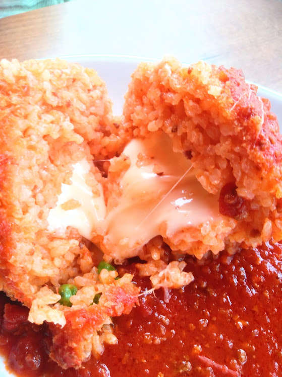 「元祖シチリア風ライスコロッケ、 ミートソースがけ」