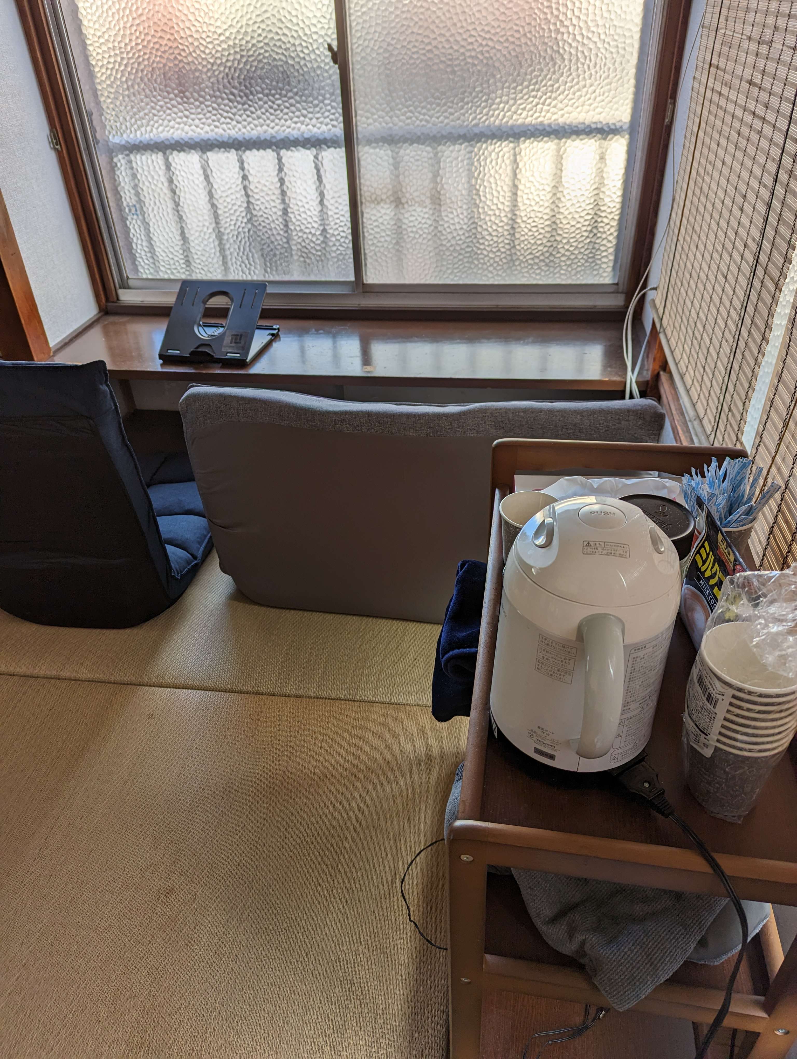 押入れを利用したスペースや明るい日差しの入る窓際のスペース、お茶コーナーが用意されています。