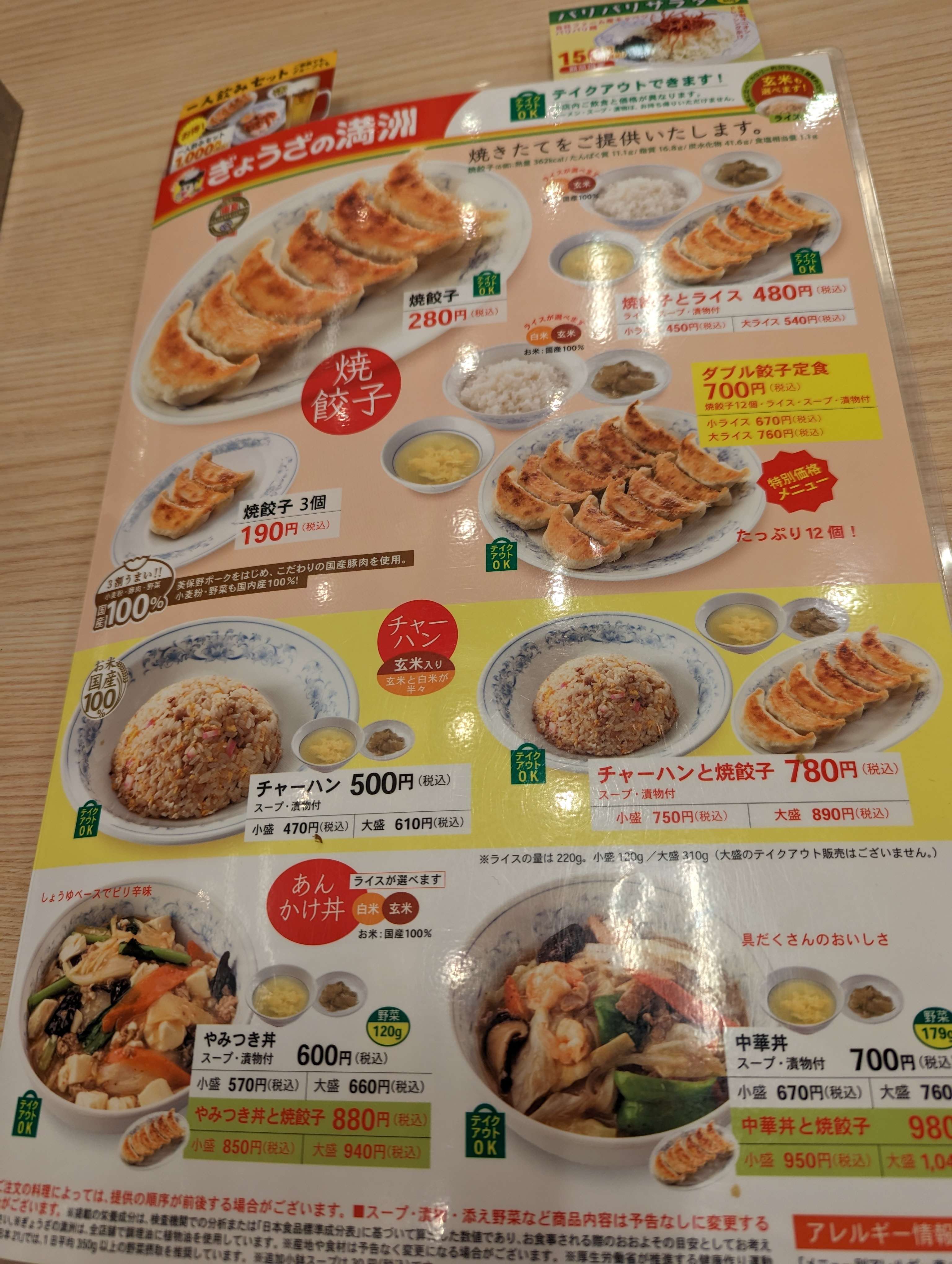 1面はぎょうざですが、なかにはほかのメニューもあります。