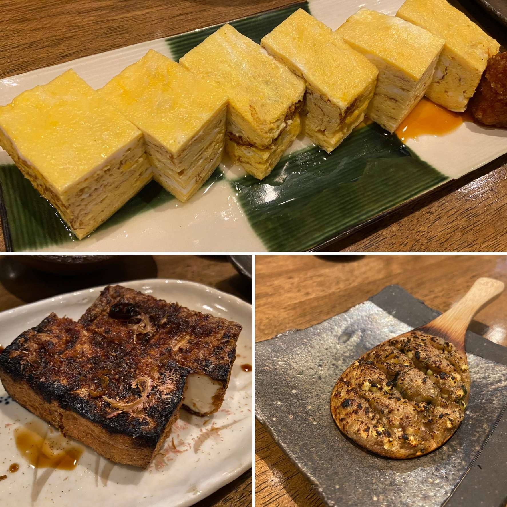 前回、隣席の方から勧められた出汁巻き卵、香ばしい焼き厚揚げと焼き味噌。