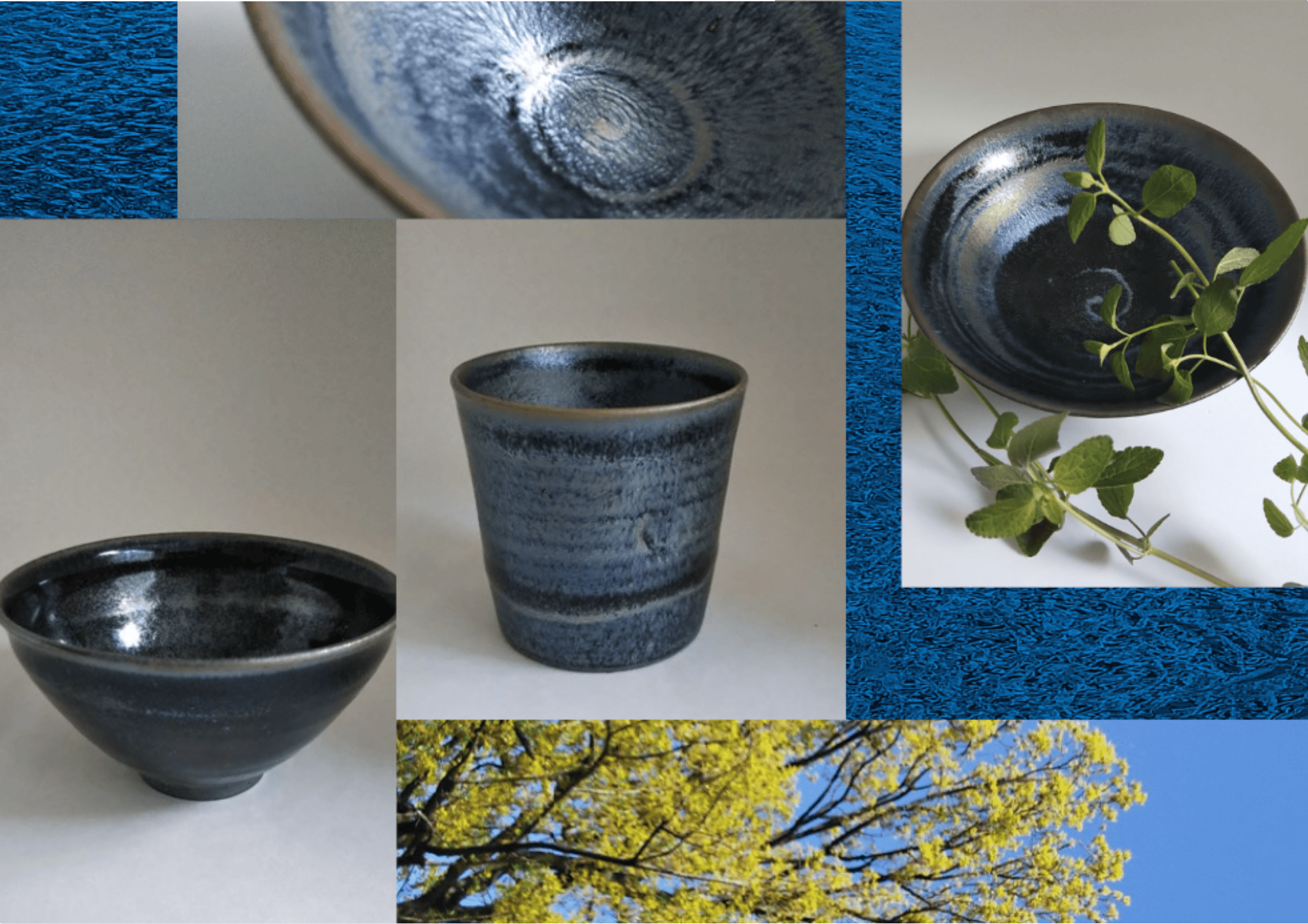 特にオリジナルの、宇宙を感じる器「銀化天目」は、漆黒と深い青にいぶし銀の結晶が美しく生まれ出る器。