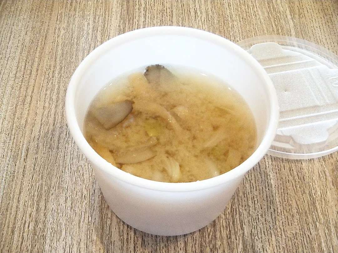 温かくて優しい味の「みそ汁」は、「おむすび弁当」と相性抜群。