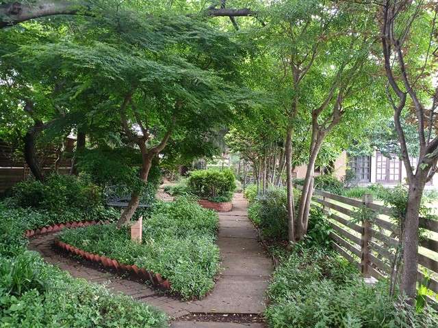 ボランティアの方々が、四季折々の草花のお手入れをされていて、今は緑濃い空間に。