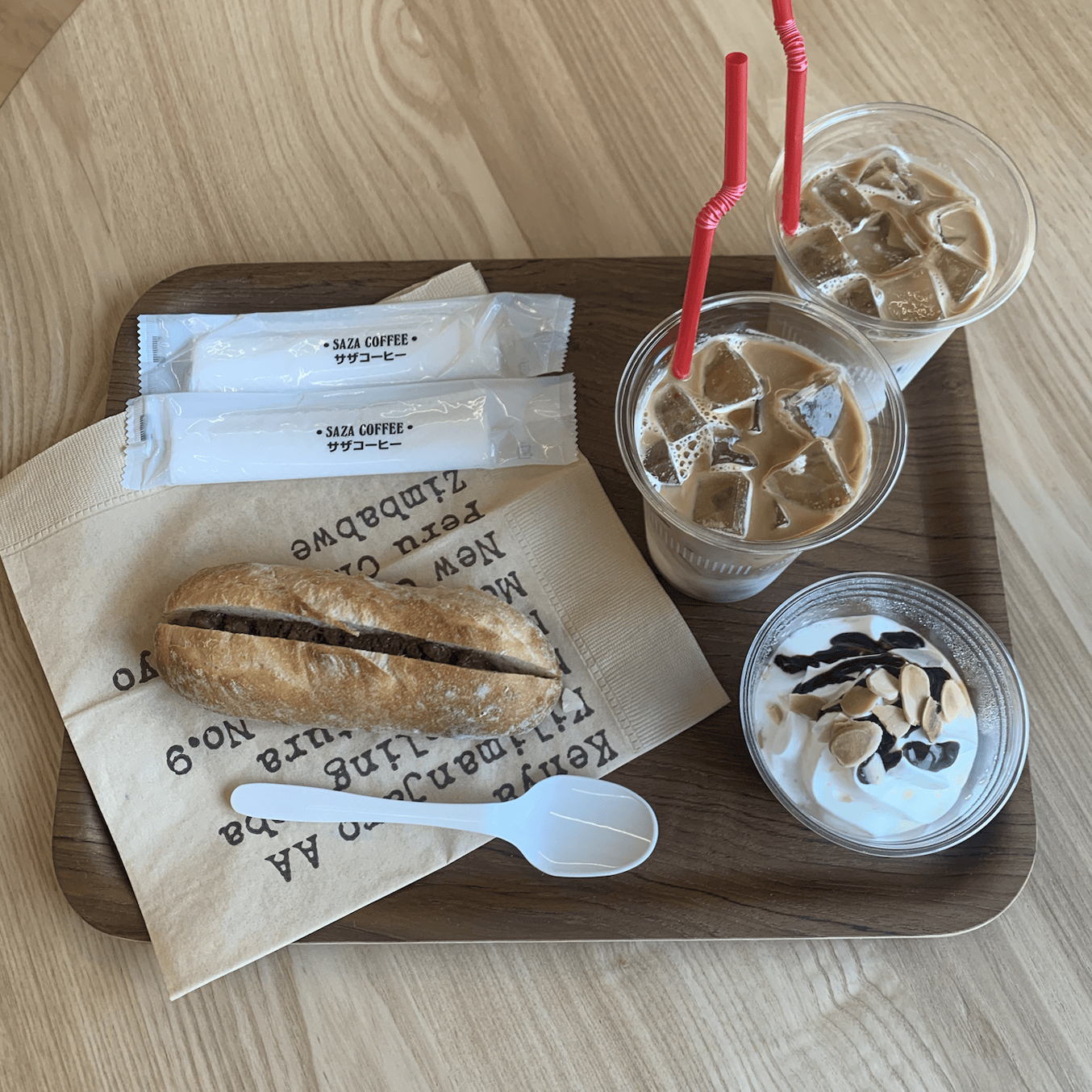 今回はアイスカフェラテ、将軍パン、コーヒーゼリーをいただきました!