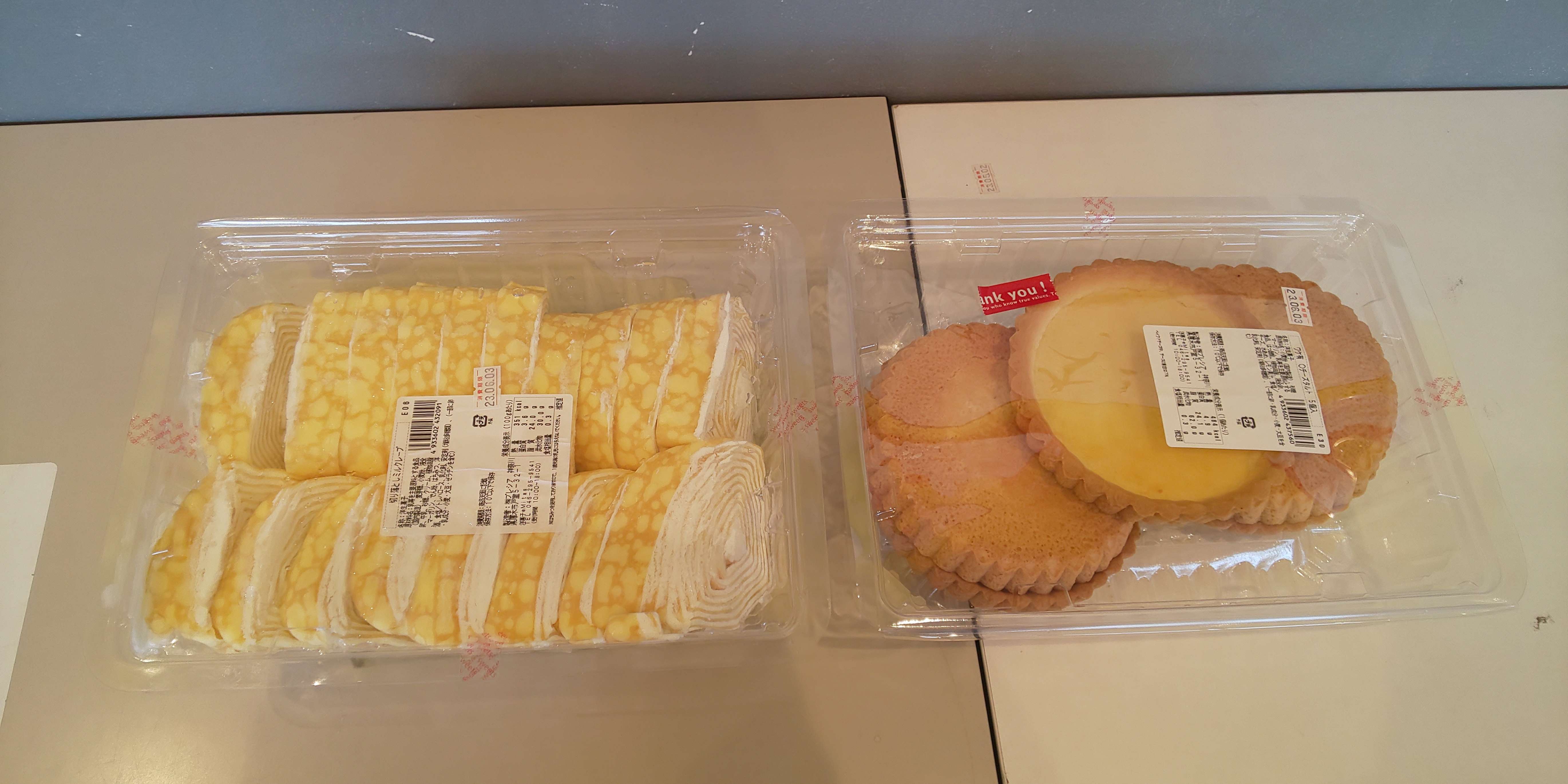 大きなパックにぎゅうぎゅうに詰められたクレープロール!重たかった。320円