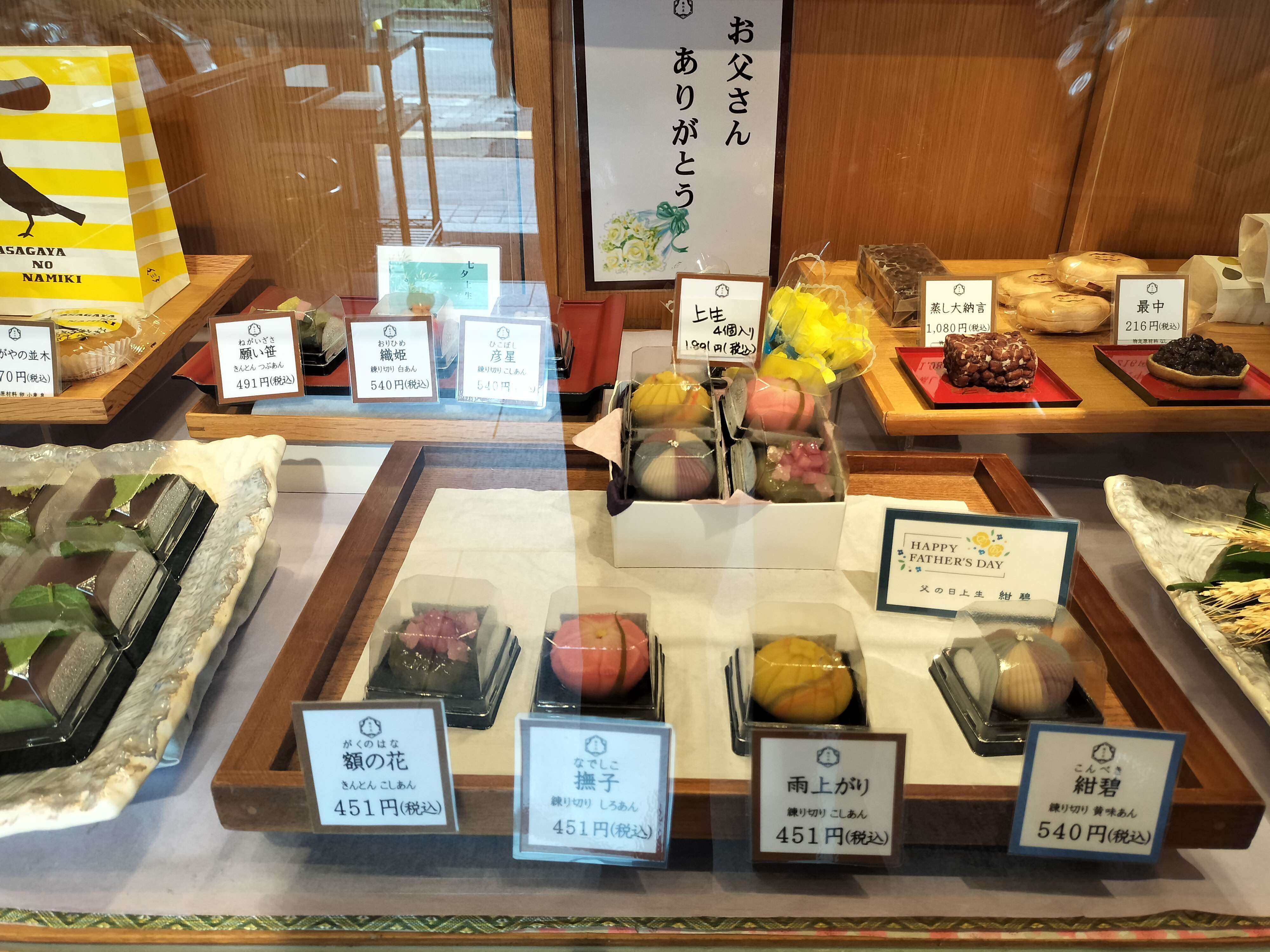 このお店では鮮やかな練り切りがショーケースにならびます。