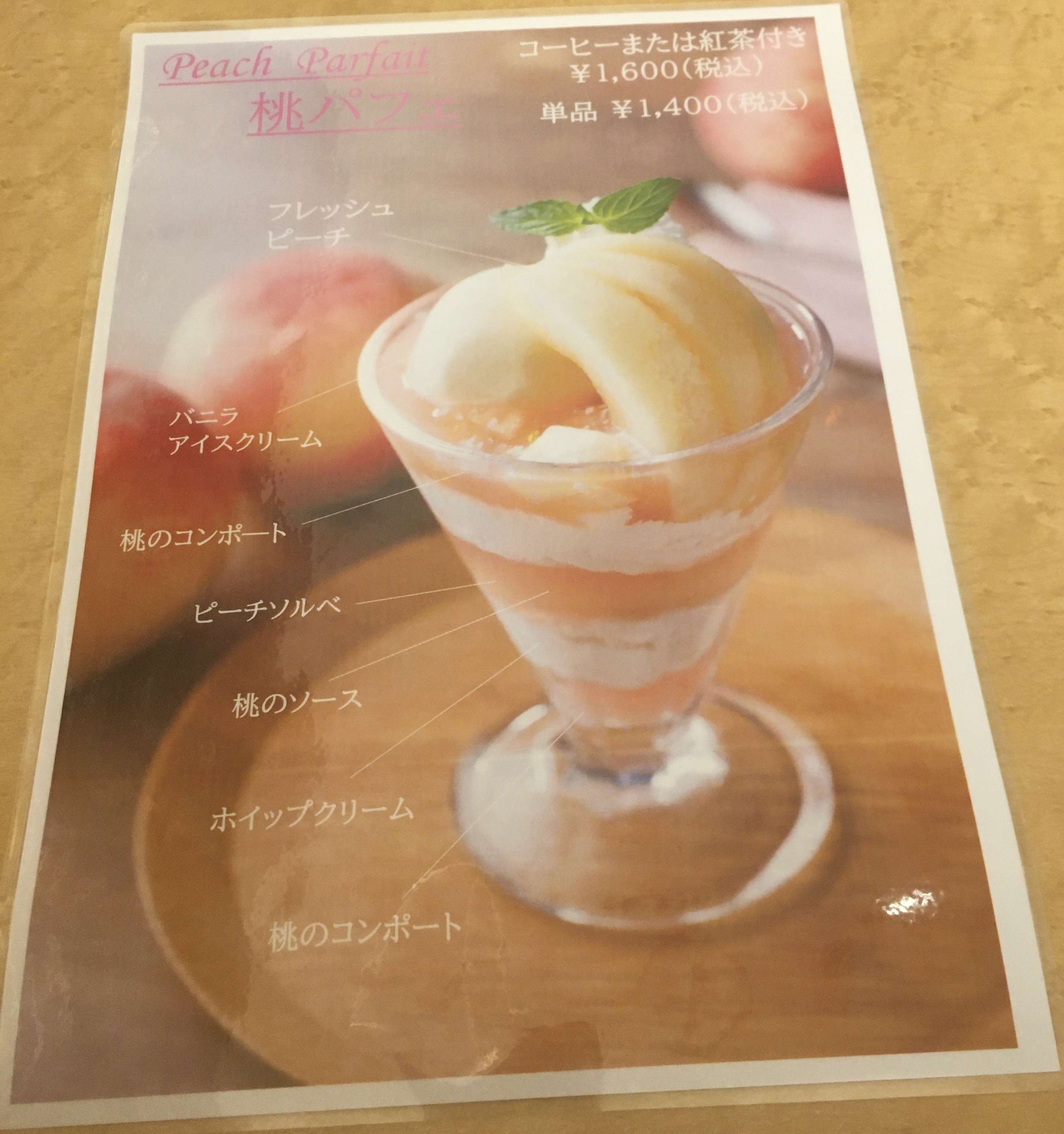 今日は桃のパフェセットとフレンチトーストセットをオーダーしました。