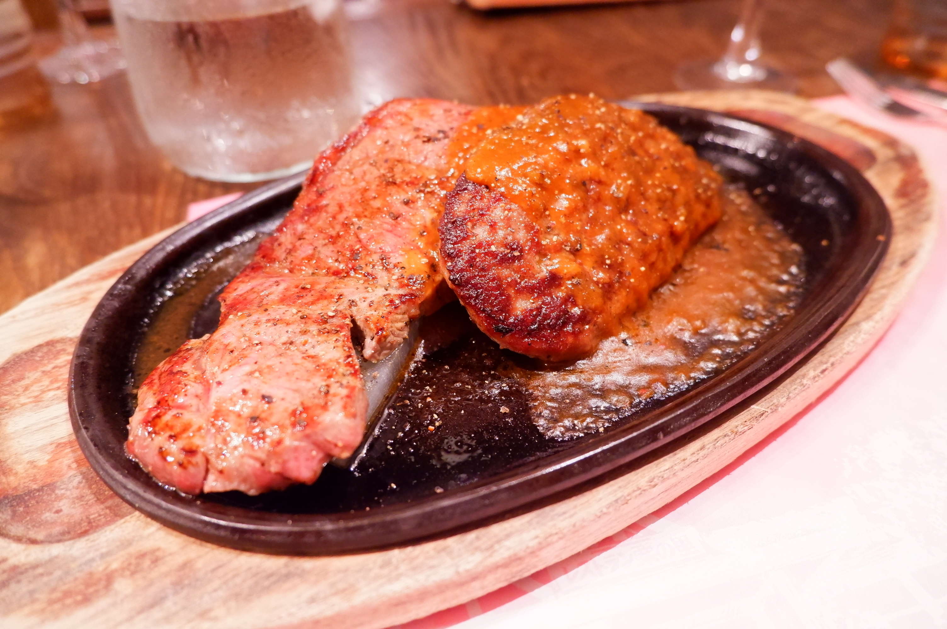 栗の里自慢のハンバーグとサーロインステーキの贅沢なセット。