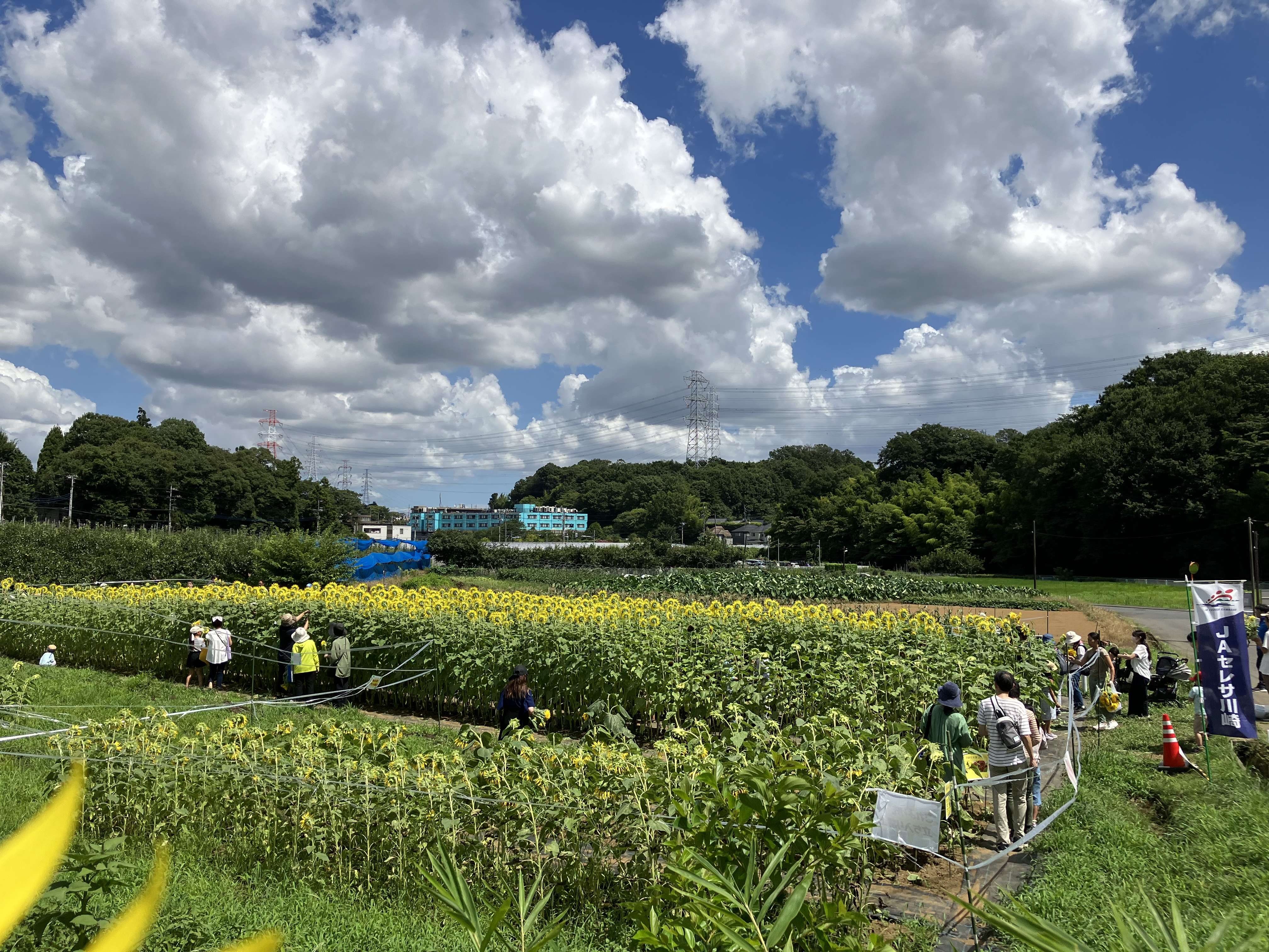 摘み取りはこの日だけでしたが、黒川のこの周辺は散策コースとして普段からも人気で、ひまわり畑を見に行くだけでも充分に楽しめます。