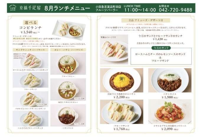 町田市原町田6-12-20 小田急百貨店町田店(3階) 042-720-9488 【営業時間】平日・土曜 10:00~20:30(ラストオーダー19:00)