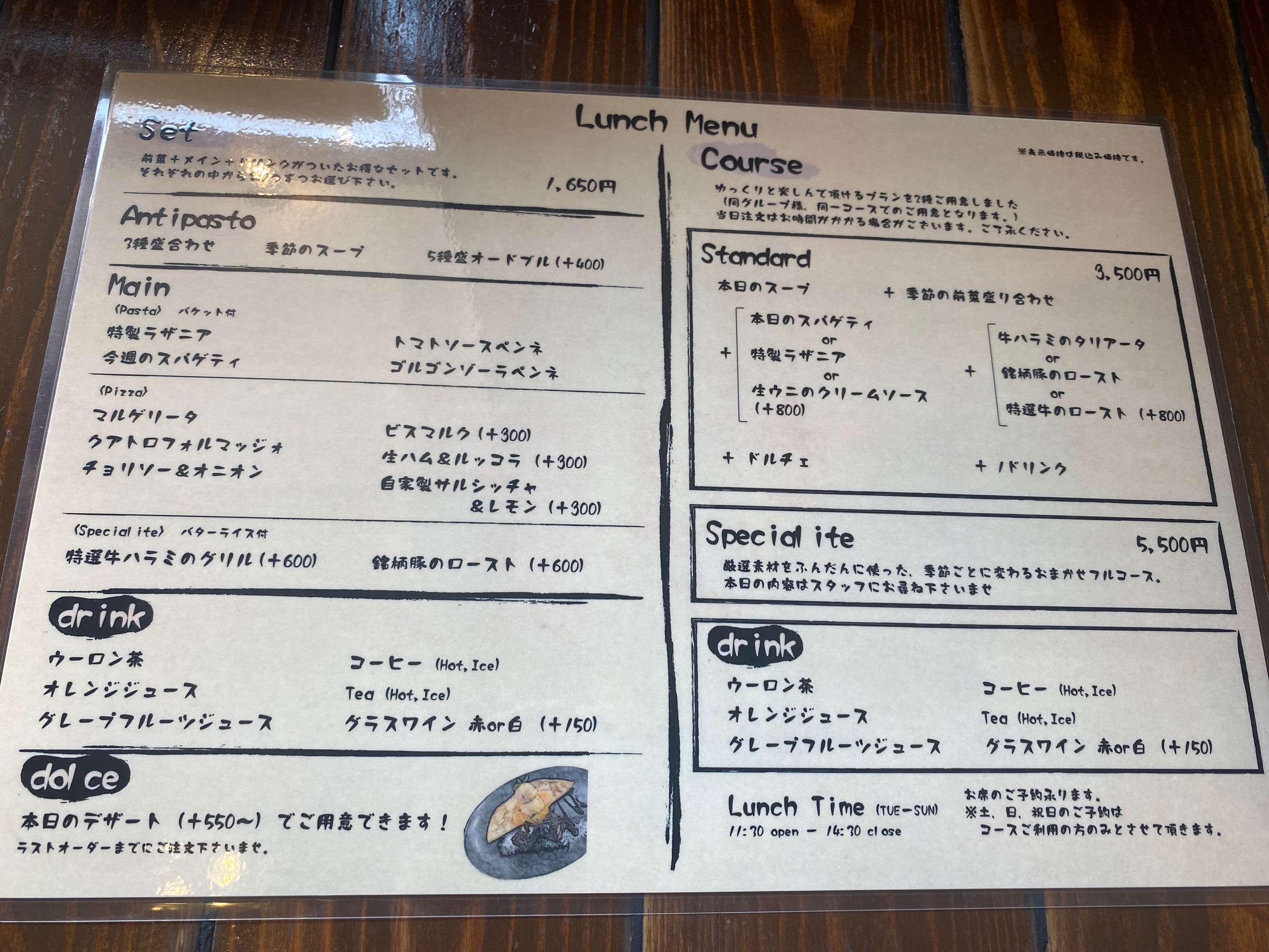 休日でもランチメニューがいただけます。