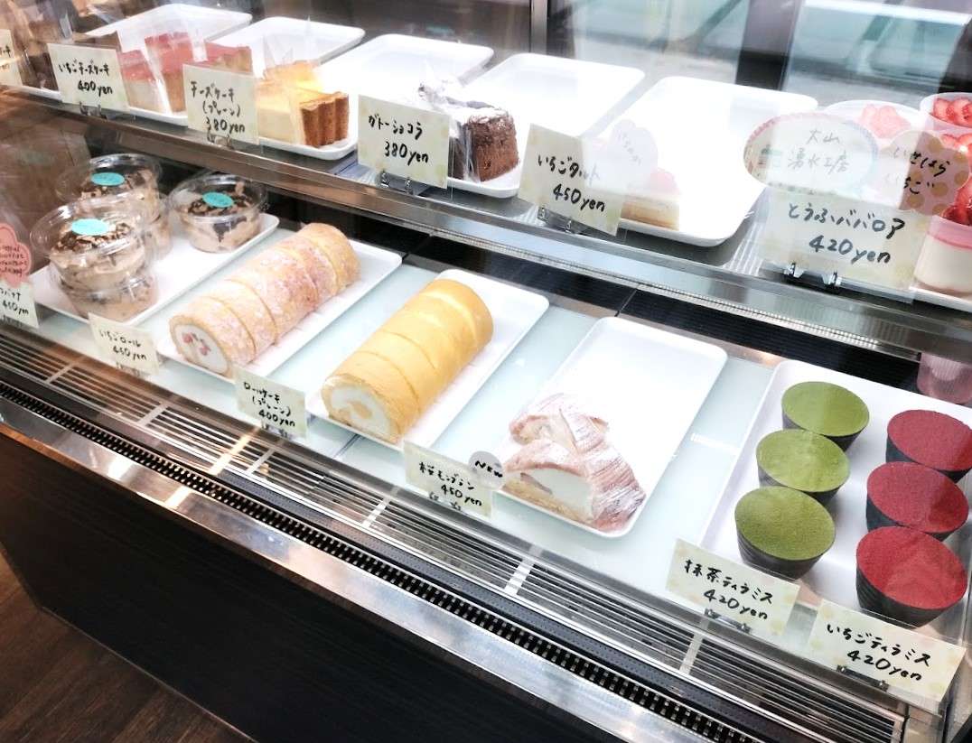 入口前のショーケースに並んだおいしそうなスイーツの数々、見ているだけでも幸せな気分になりますよ。
