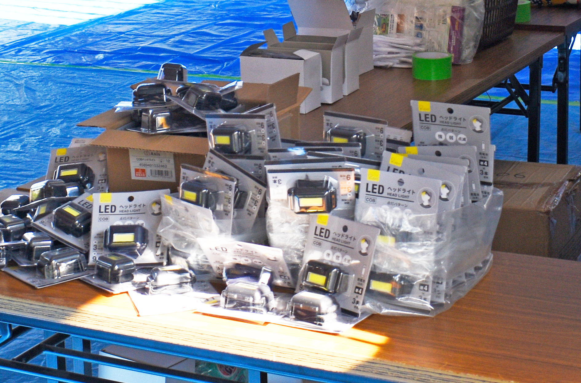 小さくてもよく光るヘッドライトは参加者から好評でした。又、今年はボールペン、携帯トイレ、子ども向けのおもちゃなどたくさんの参加賞がありました。