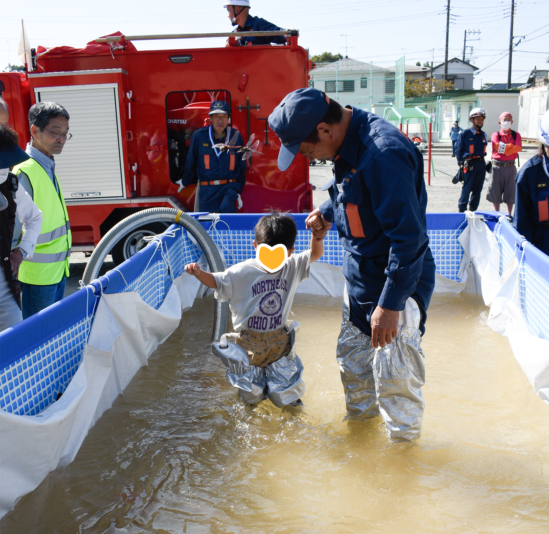 地域に合わせた防災訓練が毎年開催されています。海に面した鵠沼地区では通常の訓練に加えて浸水歩行訓練など、水の怖さを再認識できる取り組みなどがされています。