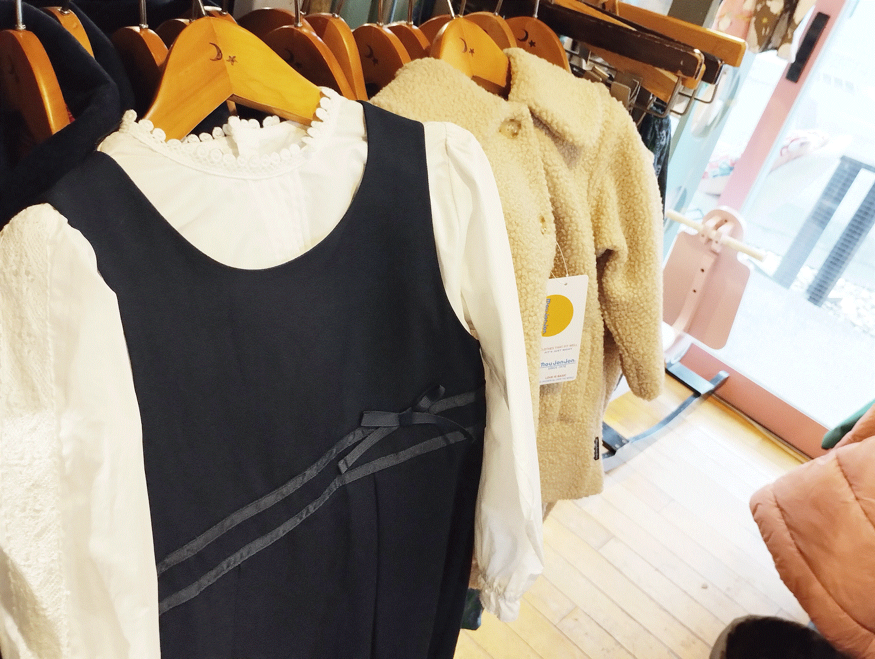 交差点を左折すると、通り沿いに子供の可愛い服や雑貨がたくさん詰まったお店を見つけました。