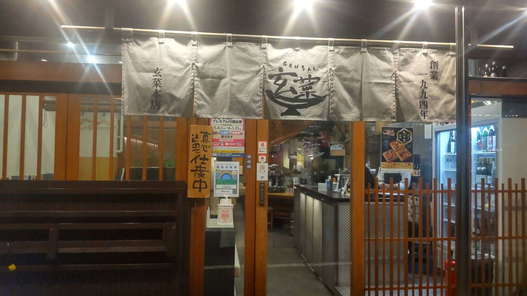 和の雰囲気が漂う外装。玄彩の文字が入ったのれんがトレードマークです。