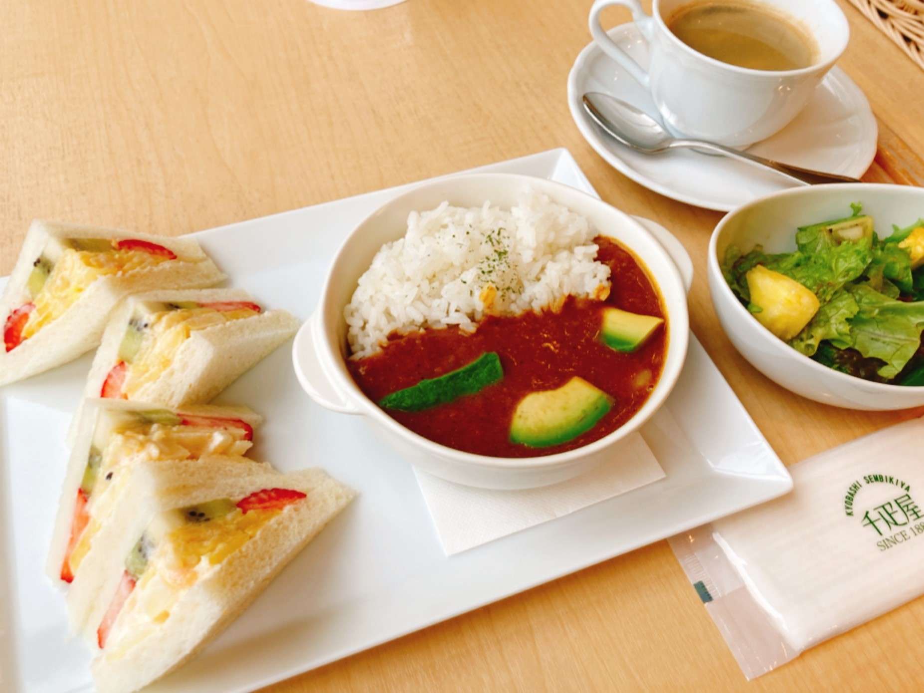この日は「フルーツサンド」「エビとアボカドのカレー」にホットコーヒーを付けました。