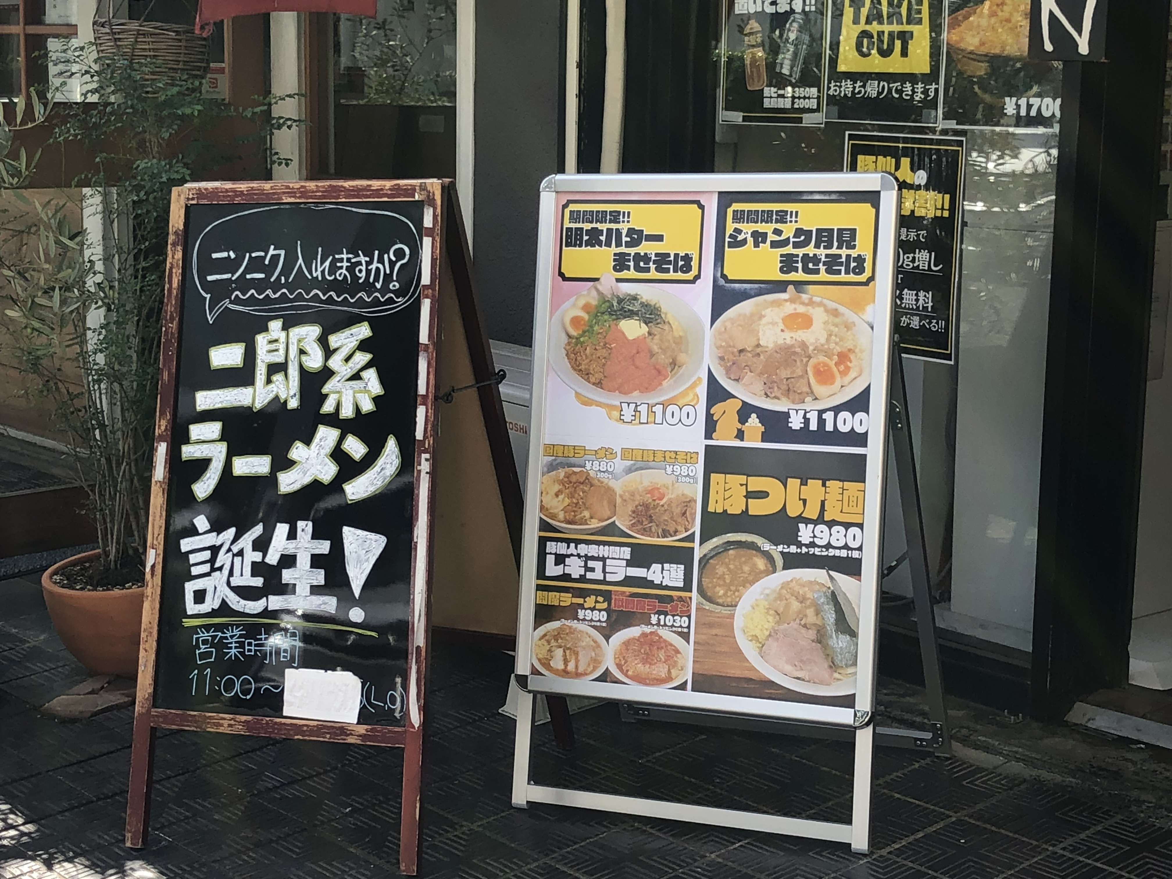 ラーメンは二郎系で極太麺。味はそれ程濃く無く、カウンターにあるカラメを入れると味に深みが出るのでお勧めです。