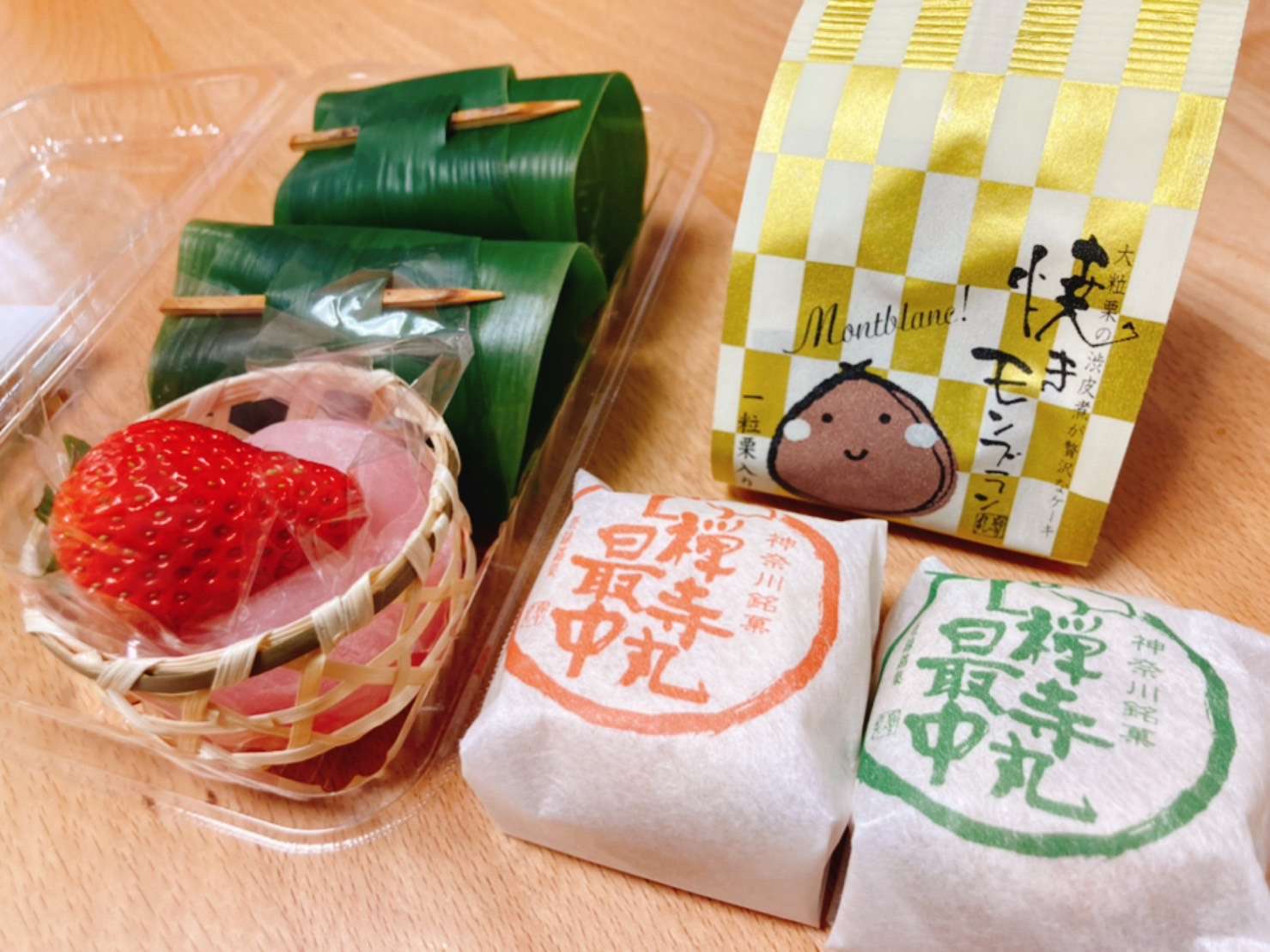 この日に購入したものは、草餅、いちご羽二重餅、最中、焼きモンブランでした!家族でペロリといただきました。