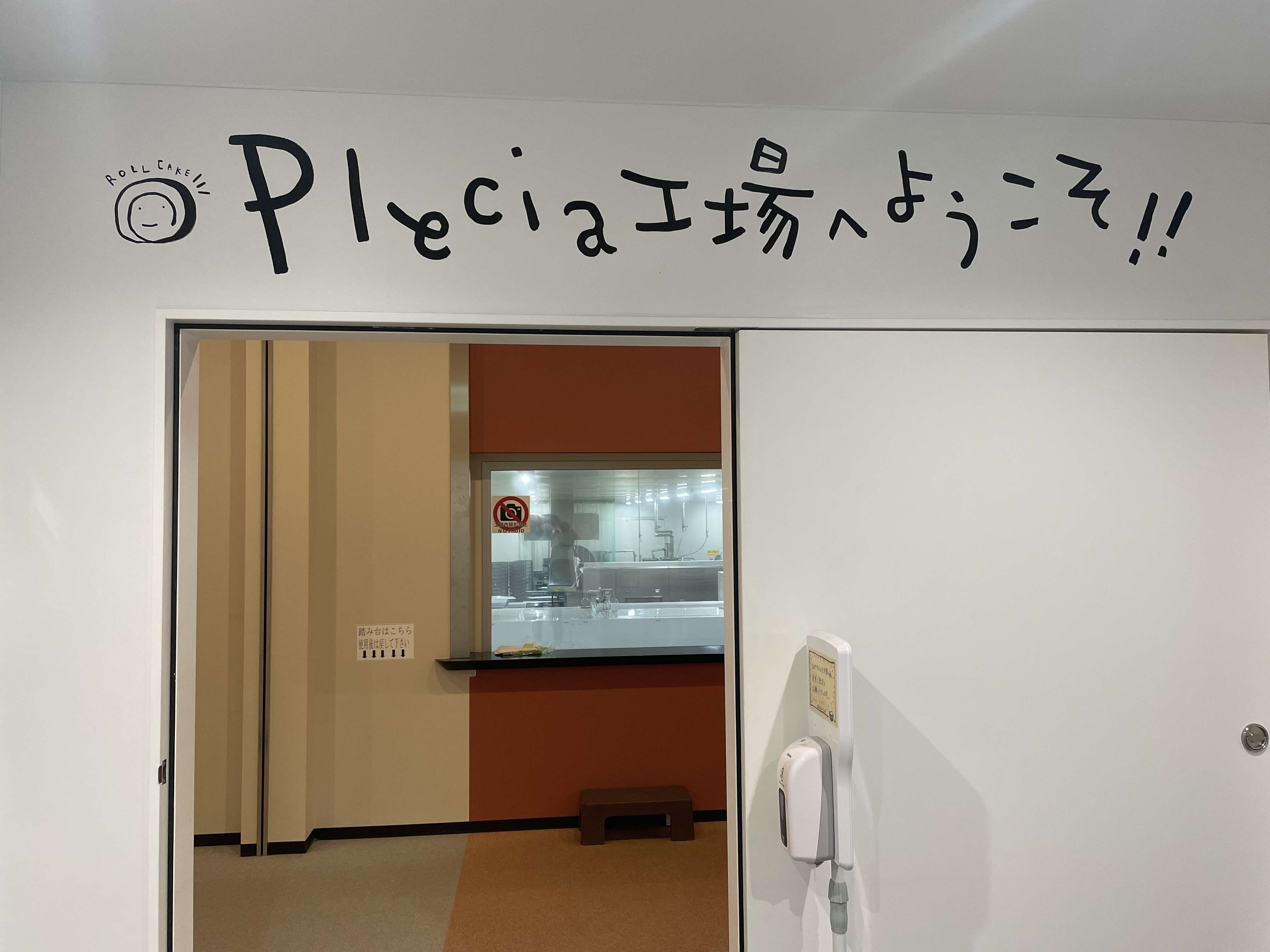同じ建物の中に、工場があり、無料で見学ができ、大きなベルトコンベアの上をたくさんのケーキが流れていくところを見ることもできます、
