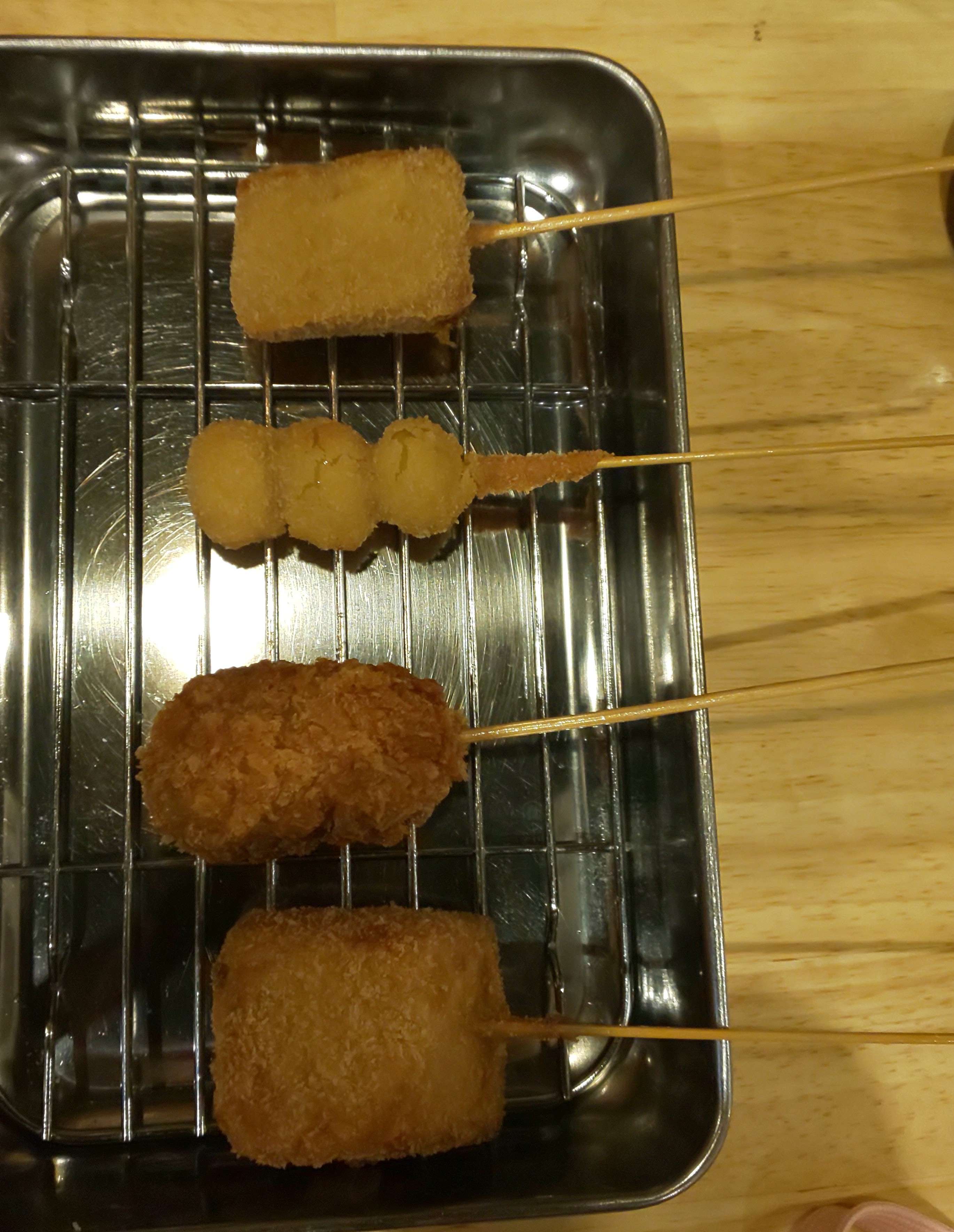 チーズ入りはんぺん、銀杏、うずらの卵、カボチャ、ウィンナーやスイートポテトの串揚げも
