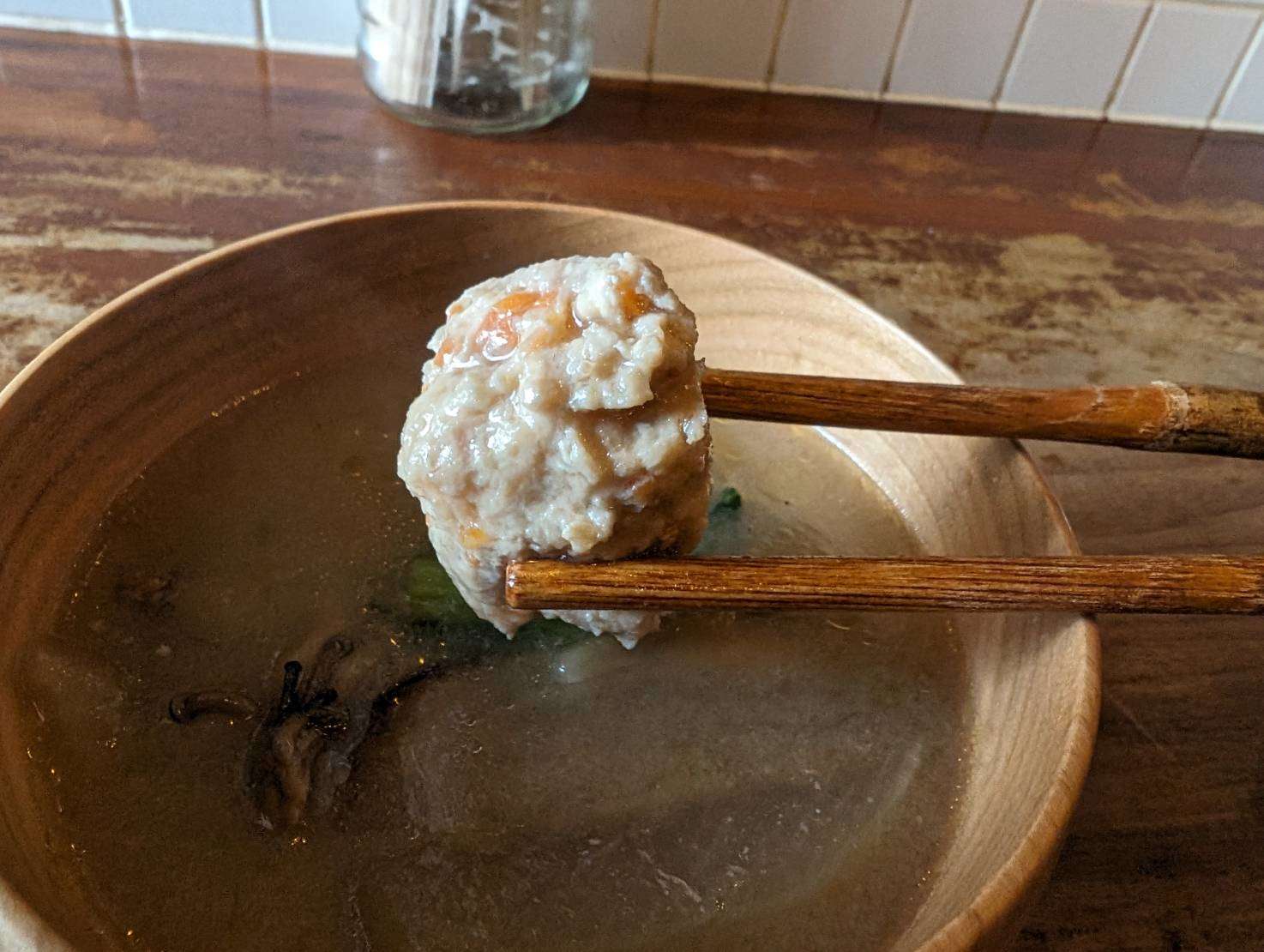 大きめの根菜はじゅわっと出汁があふれます。2カ所の部位を使ったという鶏つくねは、ふわふわでおいしいです。