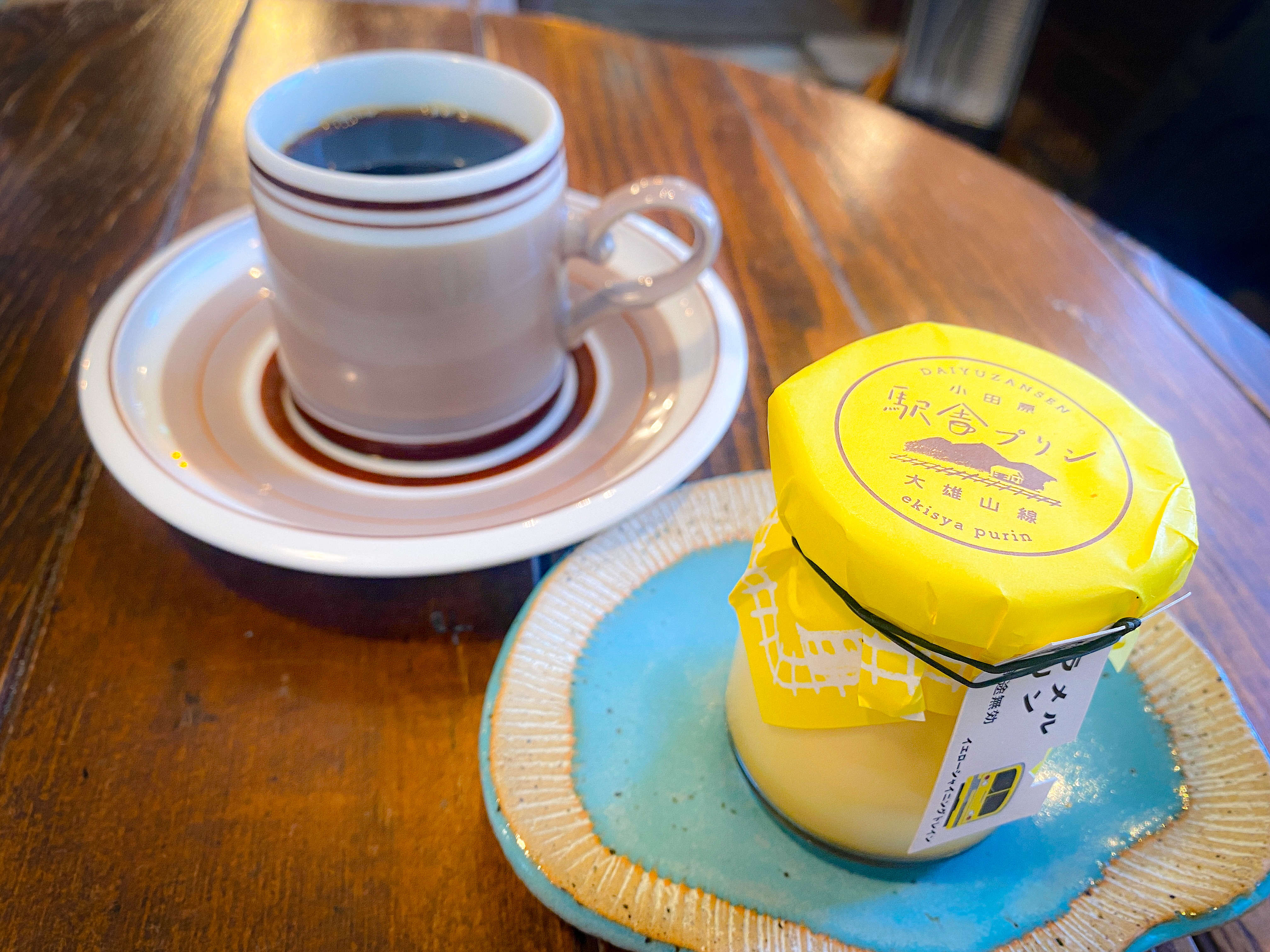 私はコーヒーが好きなので、「ドリップ珈琲 ブレンド」を注文。他にも、手土産として人気の「駅舎プリン カラメル」をオーダーしました。