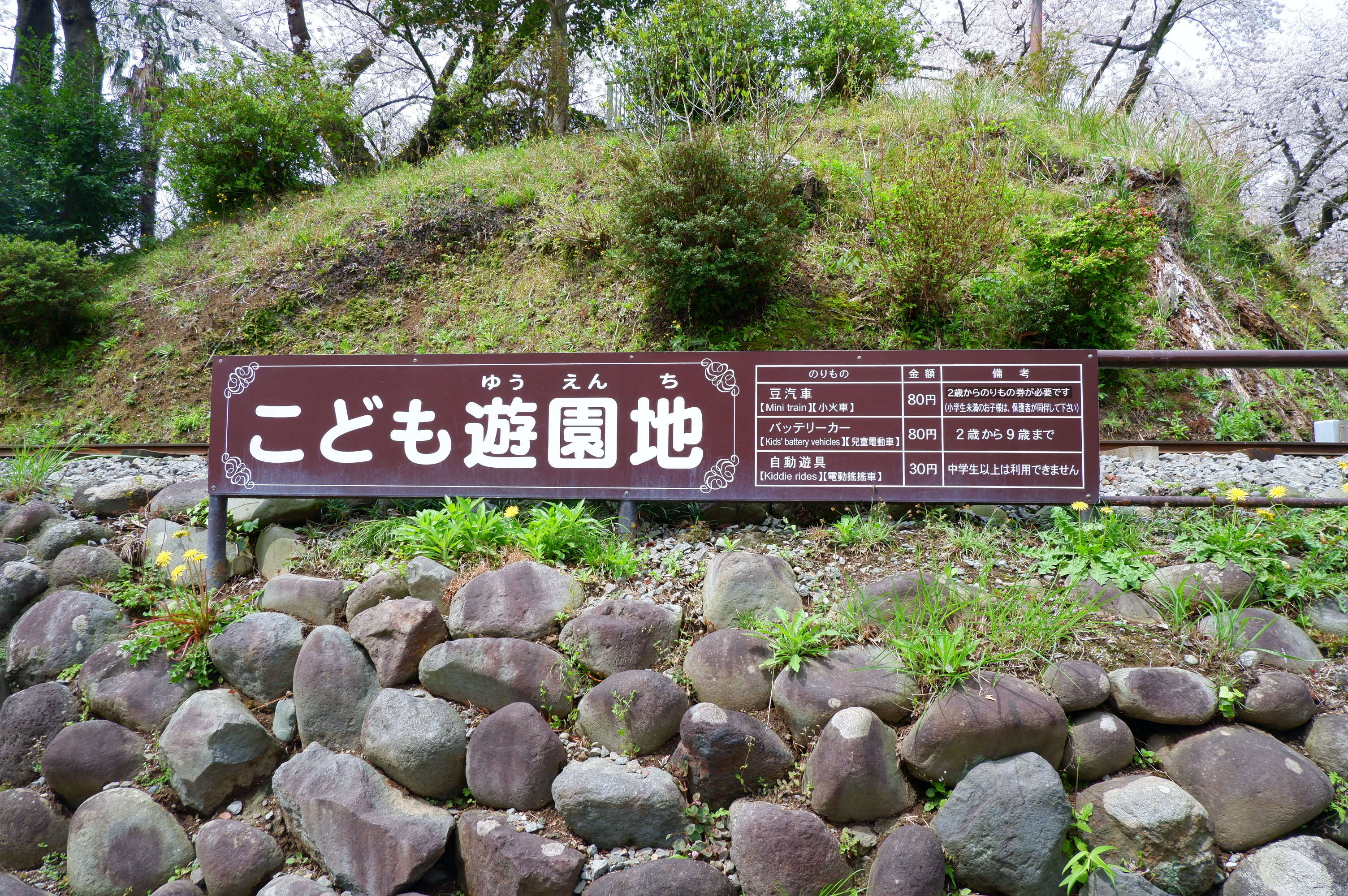 遊園地は入場無料で、豆汽車とバッテリーカーは80円、自動遊器具は30円とリーズナブル。