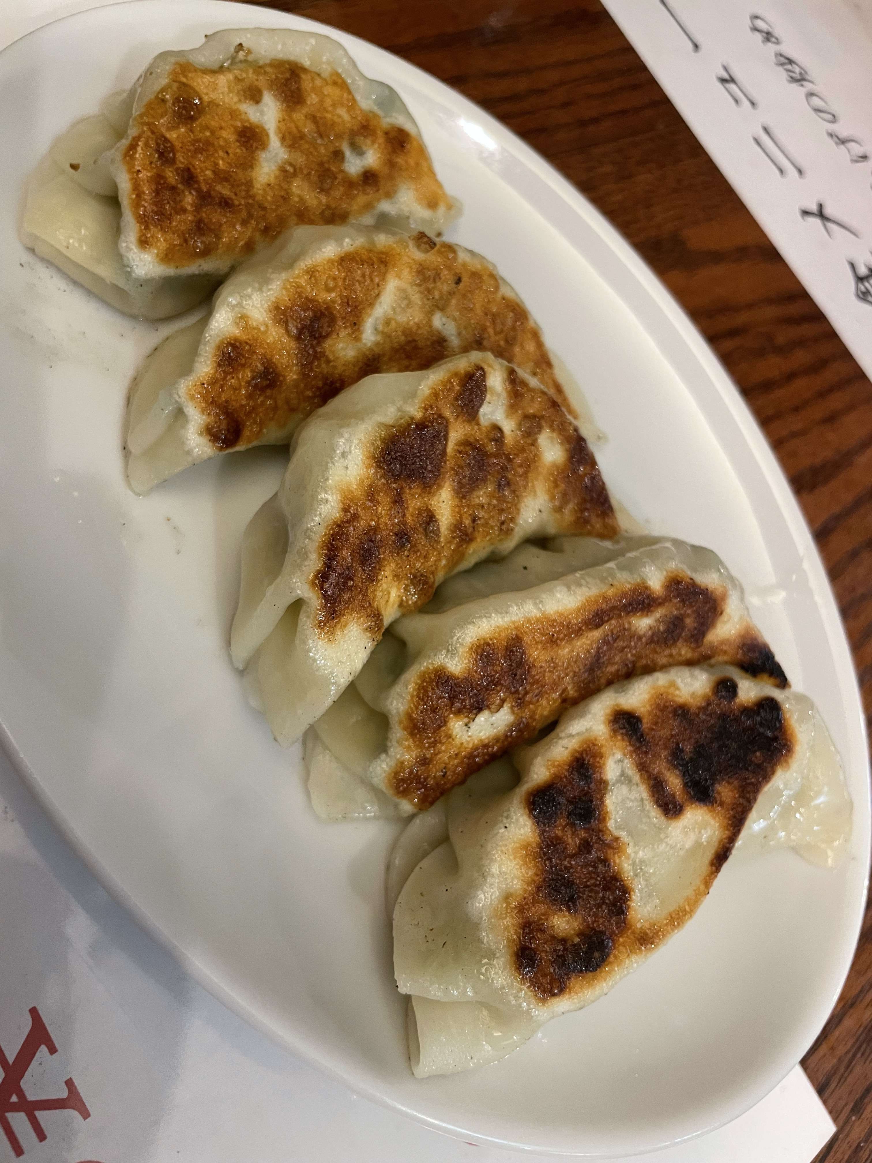 持った途端垂れてくる肉汁。モチモチの皮と中のタネが合ってておいしい。酢胡椒も醤油もそのままでもただただ美味しい。おすすめ。