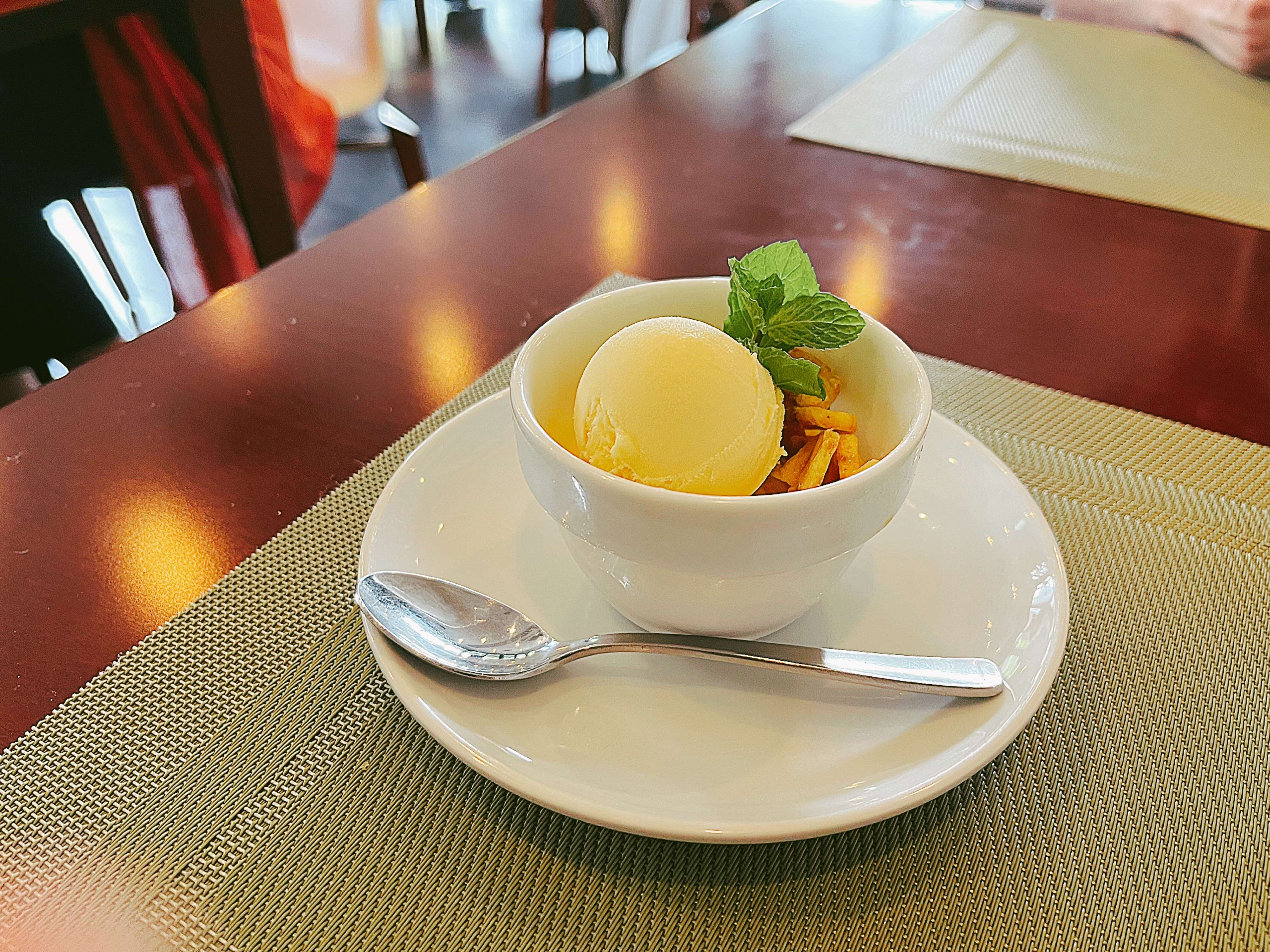食後は美味しいデザートを注文。この日はアイスとプディングでした。