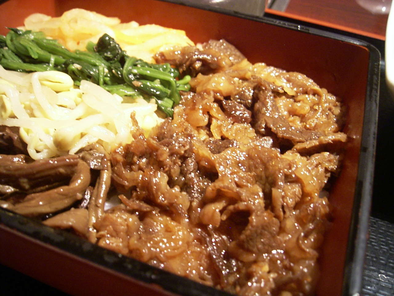 焼肉重、漬物、サラダ、ナムル、スープ、デザート、ランチドリンク