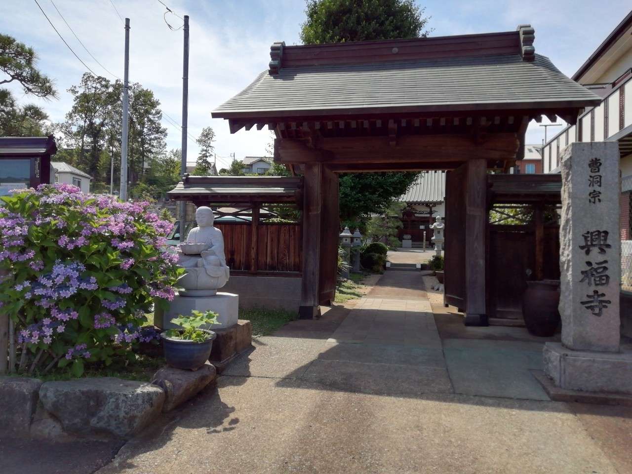 住宅地の中に きれいに紫陽花が咲いたお寺があります。