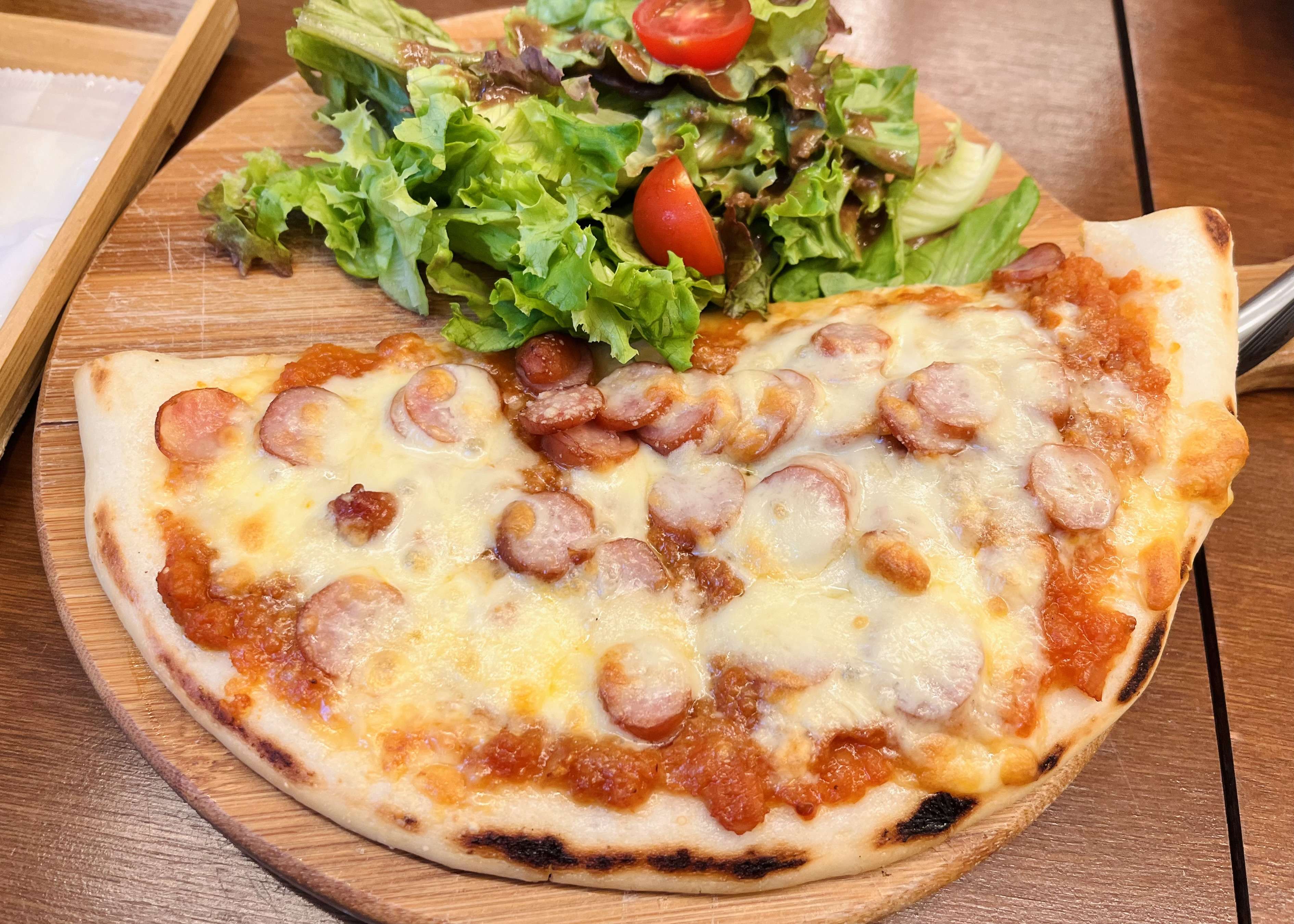 この日は友人が「チャバタサンド チキン」を、私は「野菜のトマトソースとソーセージの米粉ピザ(ハーフサイズ)」を注文!ピザは米粉の優しい風味とフワっとしつつモチモチとした食感が美味しかったです。ソースはトマトなどの野菜の甘さを感じる味で、子供にも喜ばれそうなソースかも!と思いました。