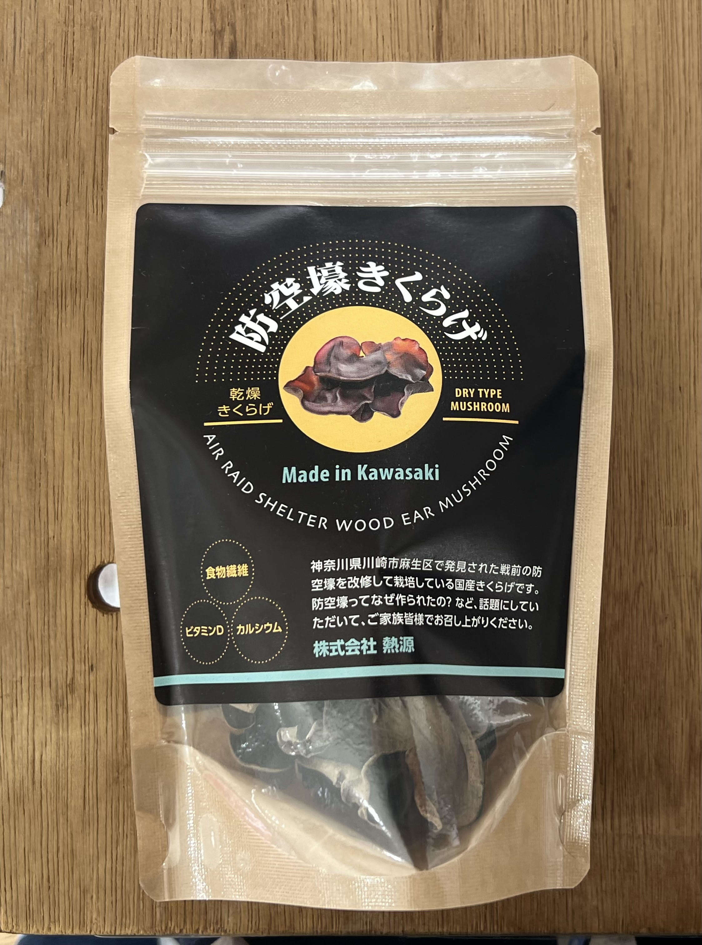 新百合ヶ丘駅から歩いて15分ほどの「麻生郵便局」の前には、きくらげを売っている自動販売機があります。そのきくらげの名前は「防空壕きくらげ」。麻生区には、川崎から学童疎開をした子どもたちのために作られた防空壕が今も残っていますが、その防空壕を改修し、その中でつくられているのが「防空壕きくらげ」です。日本郵政グループの「ふるさと小包」にも選ばれていますので、プレゼントにもおすすめです。ぷりぷりしておいしいですよ!